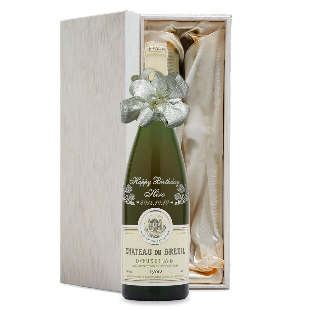 1960年に収穫されたブドウで作られた生まれ年ワインに、名前やメッセージを彫刻して贈る、特別なオーダーメイドギフト。誕生日や記念日に、世界でひとつだけの感動をお届けします。