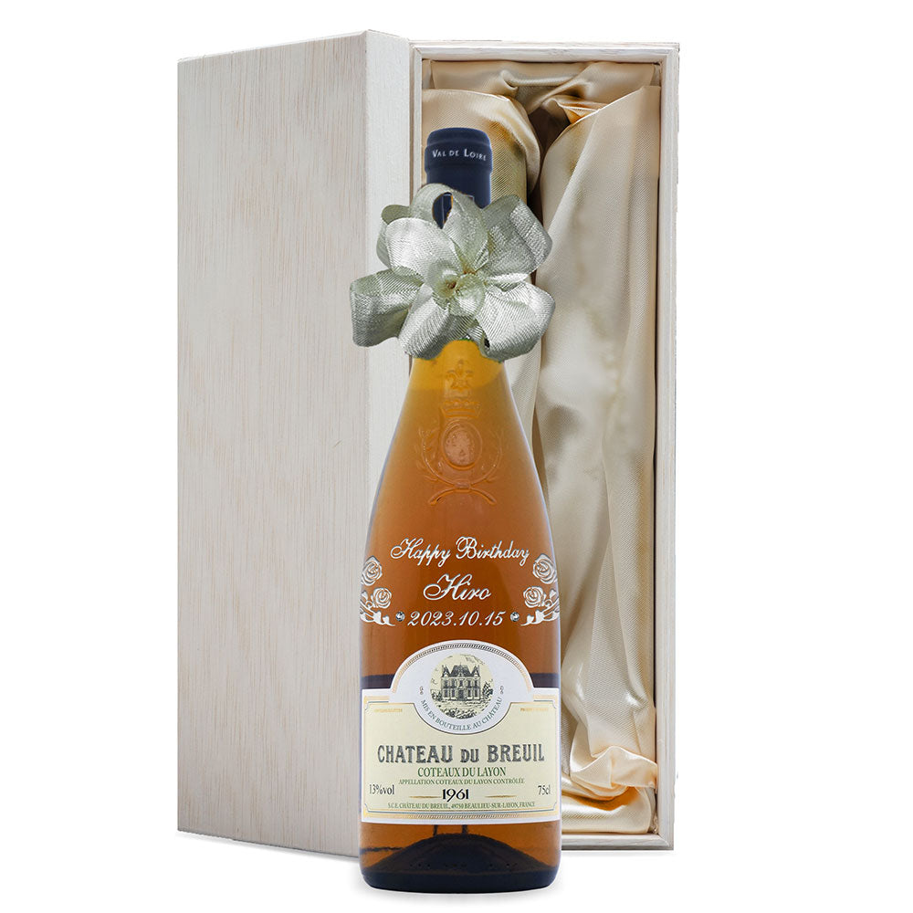 1961年に収穫されたブドウで作られた生まれ年ワインに、名前やメッセージを彫刻して贈る、特別なオーダーメイドギフト。誕生日や記念日に、世界でひとつだけの感動をお届けします。