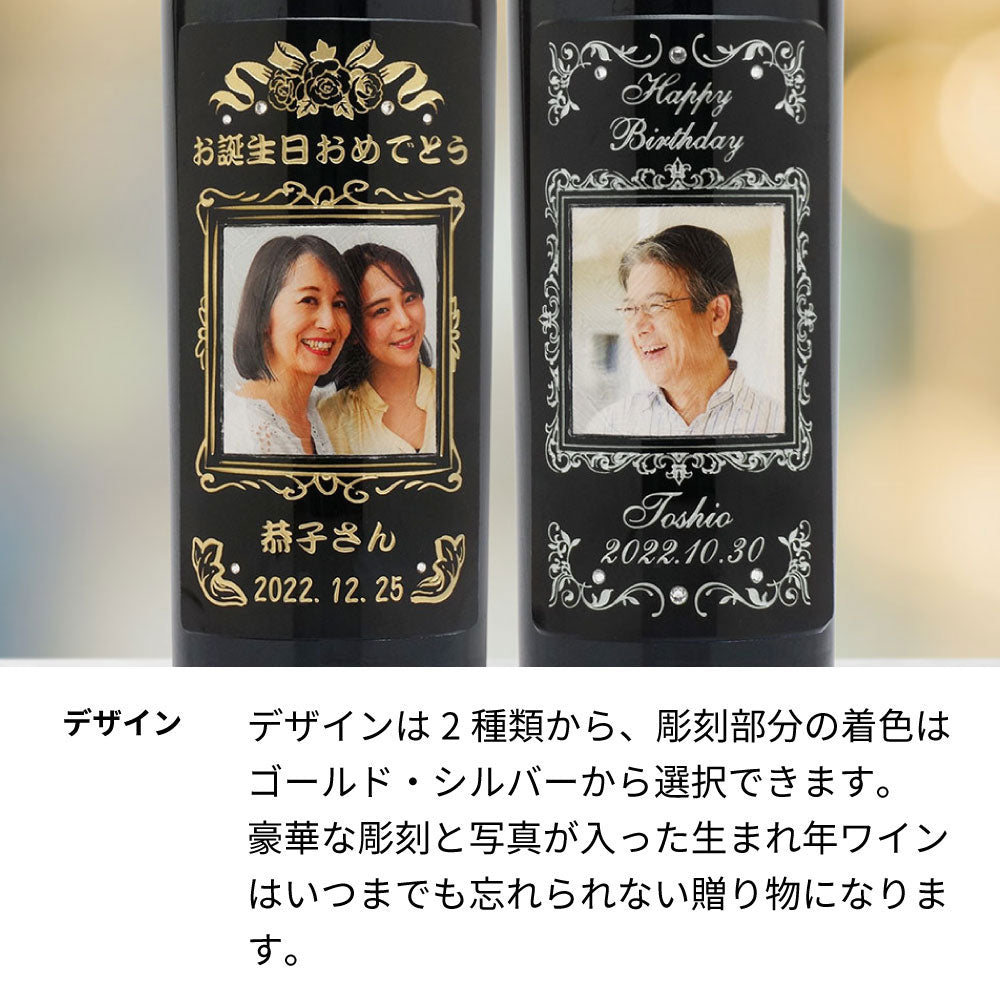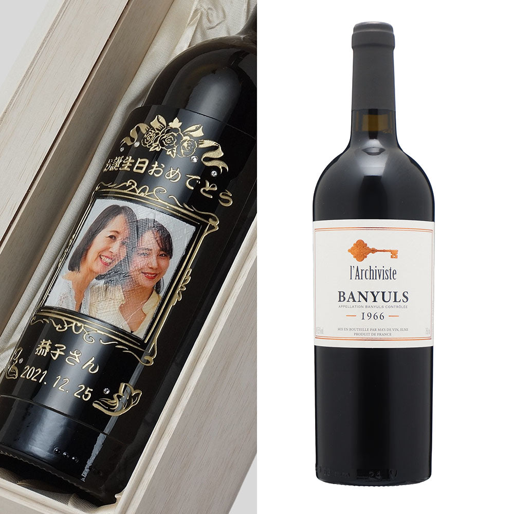 60歳 還暦祝い 1966年 生まれ年ワイン 写真と名前入り彫刻のお酒 木箱入 昭和41年 甘口
