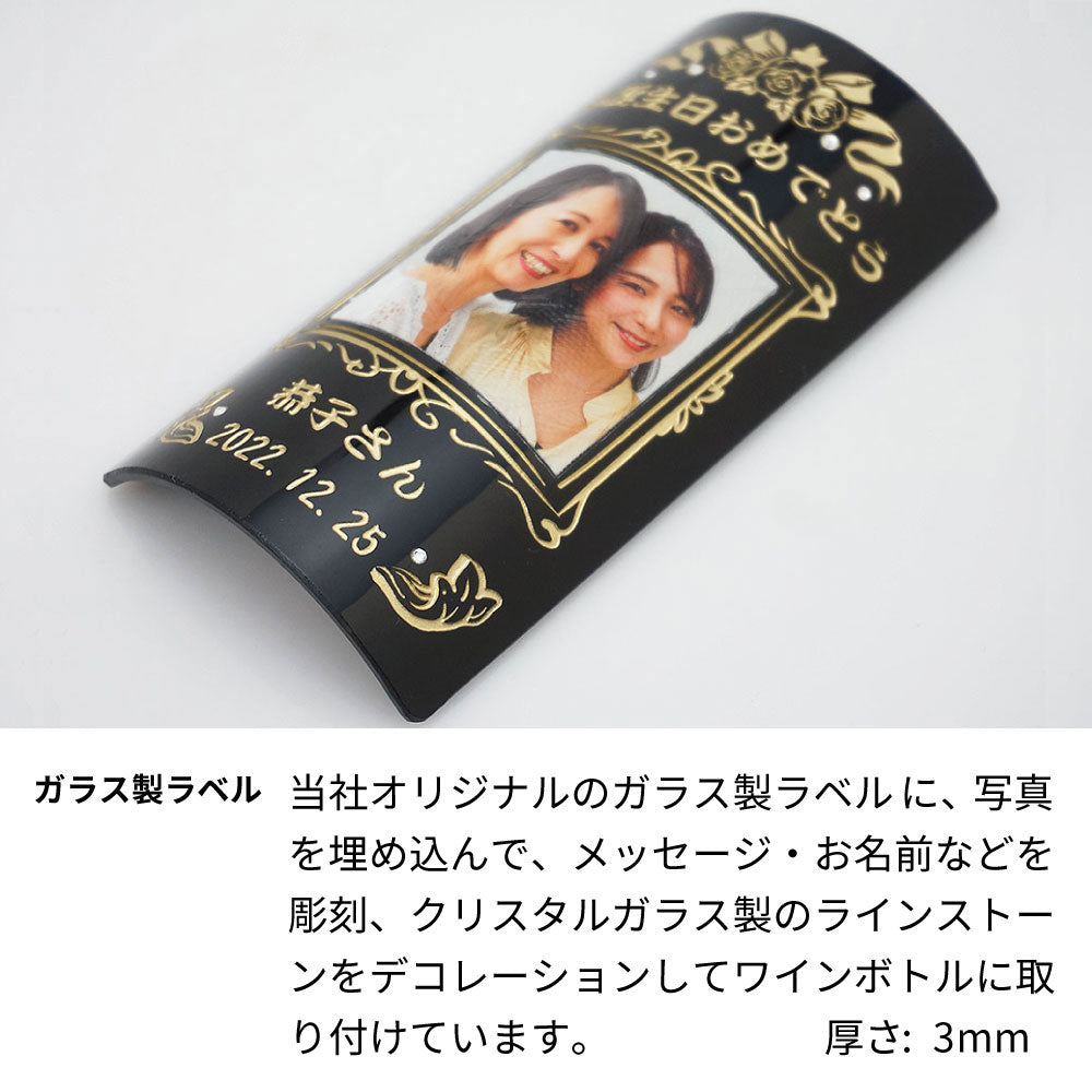オリジナルのガラス製ラベルにメッセージ・名前・日付を彫刻して写真を埋め込んでクリスタルガラス製のラインストーンを装飾してのオーダーメイドのオリジナルギフトを制作します。