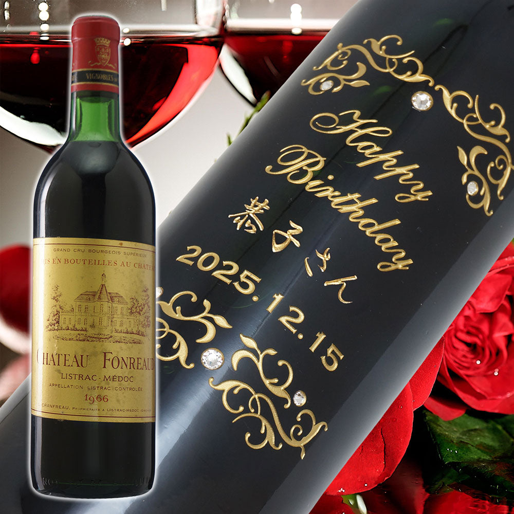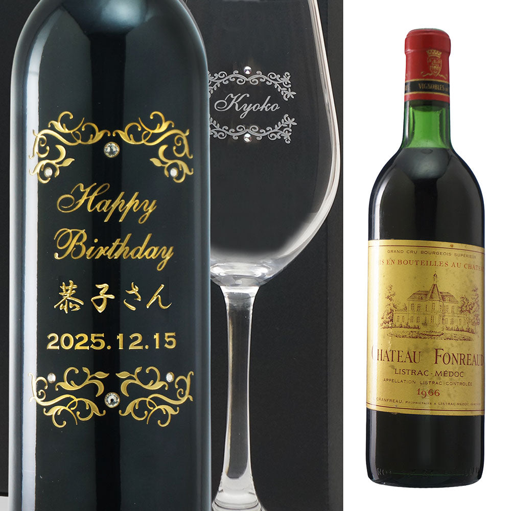 1966年に収穫されたブドウで作られた生まれ年ワインに、名前やメッセージを彫刻し、ワイングラスとともに贈る特別なオーダーメイドギフト。誕生日や記念日に、大切な方への感動を演出します。