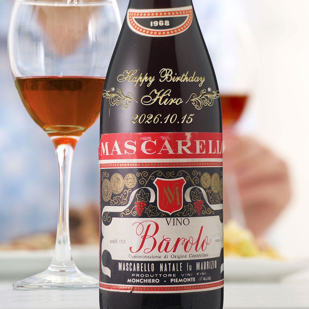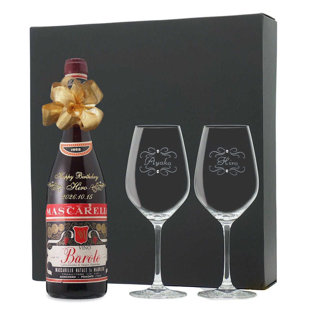 1968年に収穫されたブドウで作られた生まれ年ワインに、名前やメッセージを彫刻し、ペアグラスとともに贈るオーダーメイドギフト。心に残る、感動のプレゼントです。