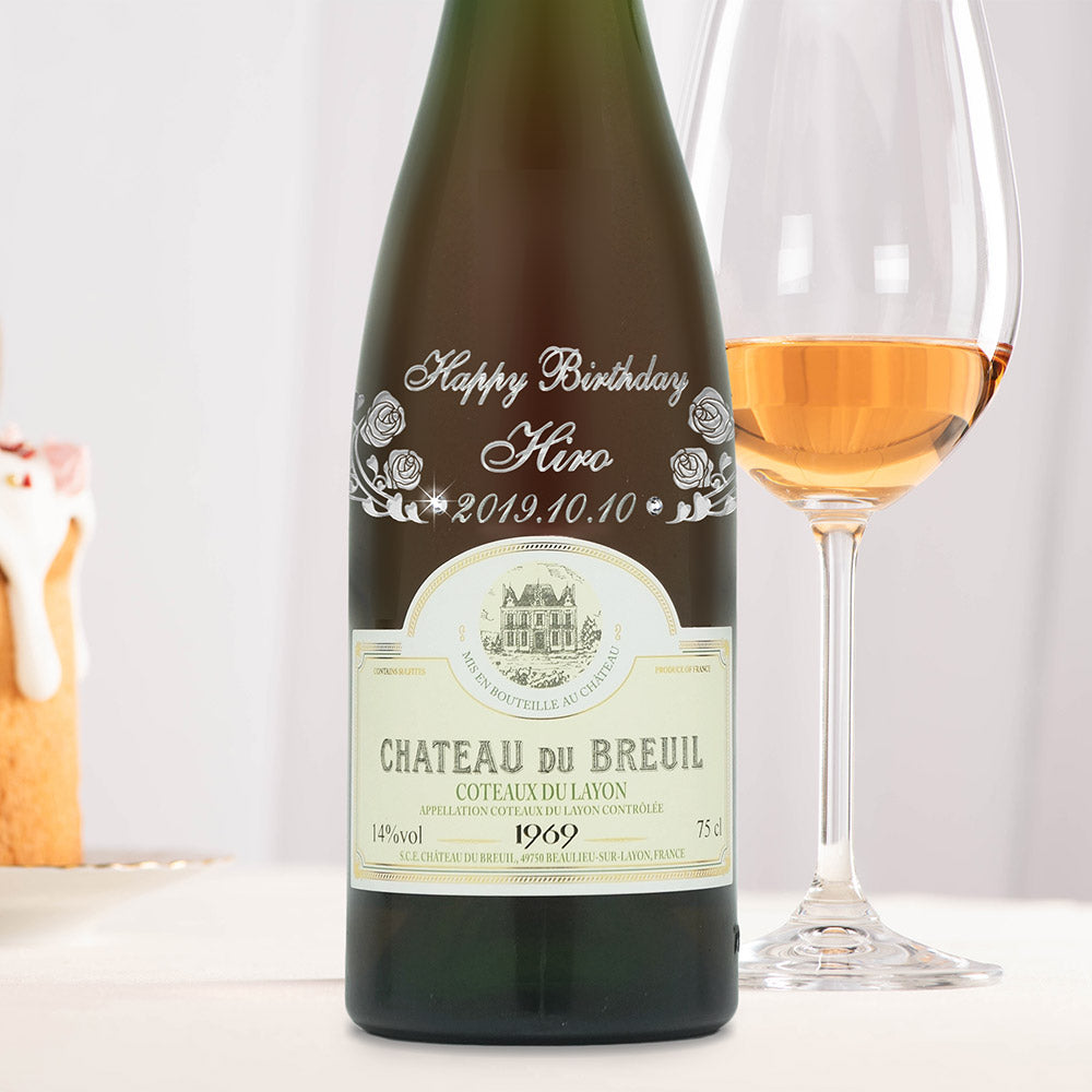1969年に収穫されたブドウで作られた生まれ年ワインに、名前やメッセージを彫刻して贈る、特別なオーダーメイドギフト。誕生日や記念日に、世界でひとつだけの感動をお届けします。