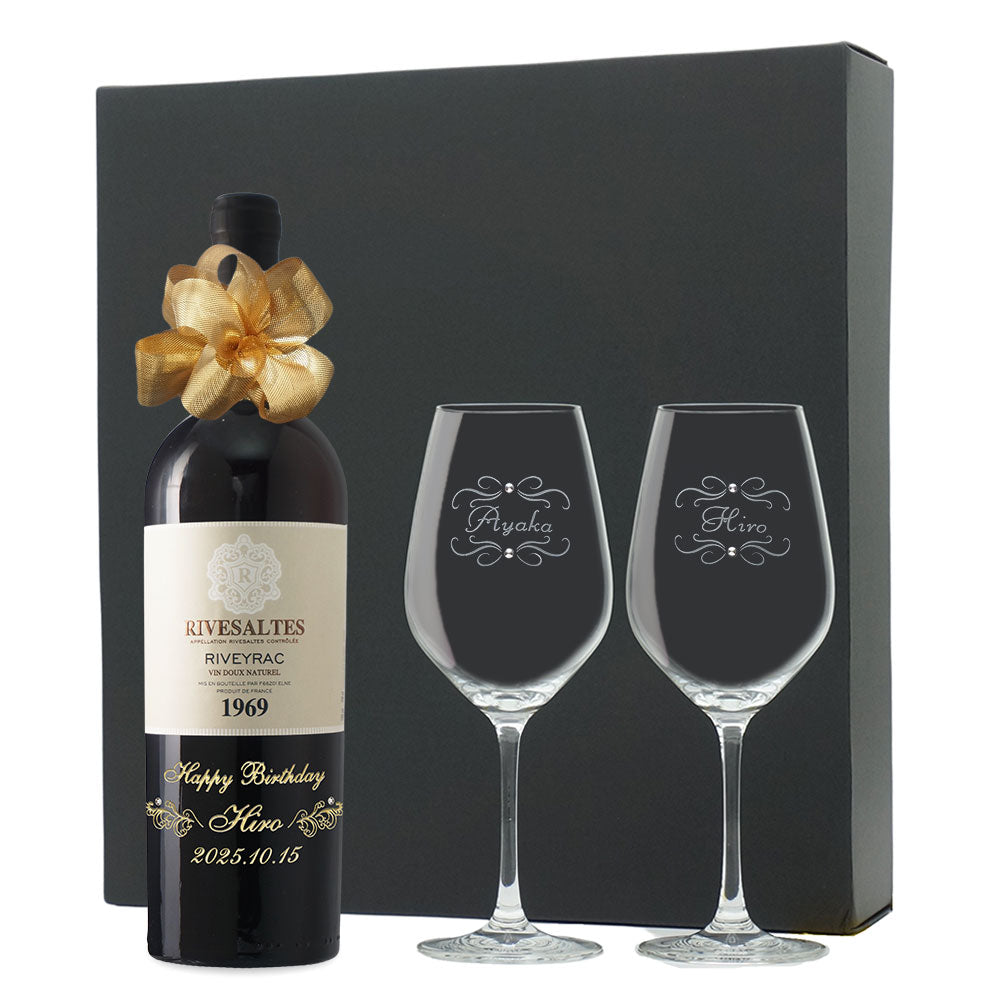 1969年 生まれ年ワイン ペアグラスのセット 名前入り彫刻のお酒 昭和44年
