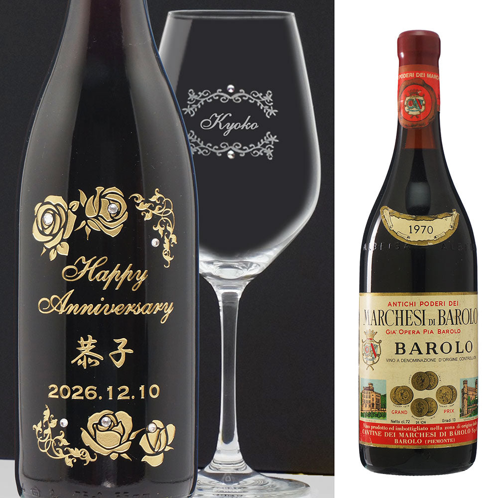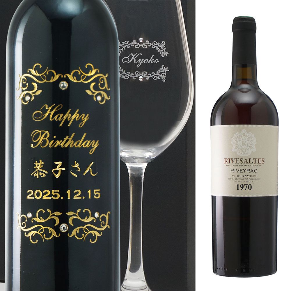 1970年に収穫されたブドウで作られた生まれ年ワインに、名前やメッセージを彫刻し、ワイングラスとともに贈る特別なオーダーメイドギフト。誕生日や記念日に、大切な方への感動を演出します。