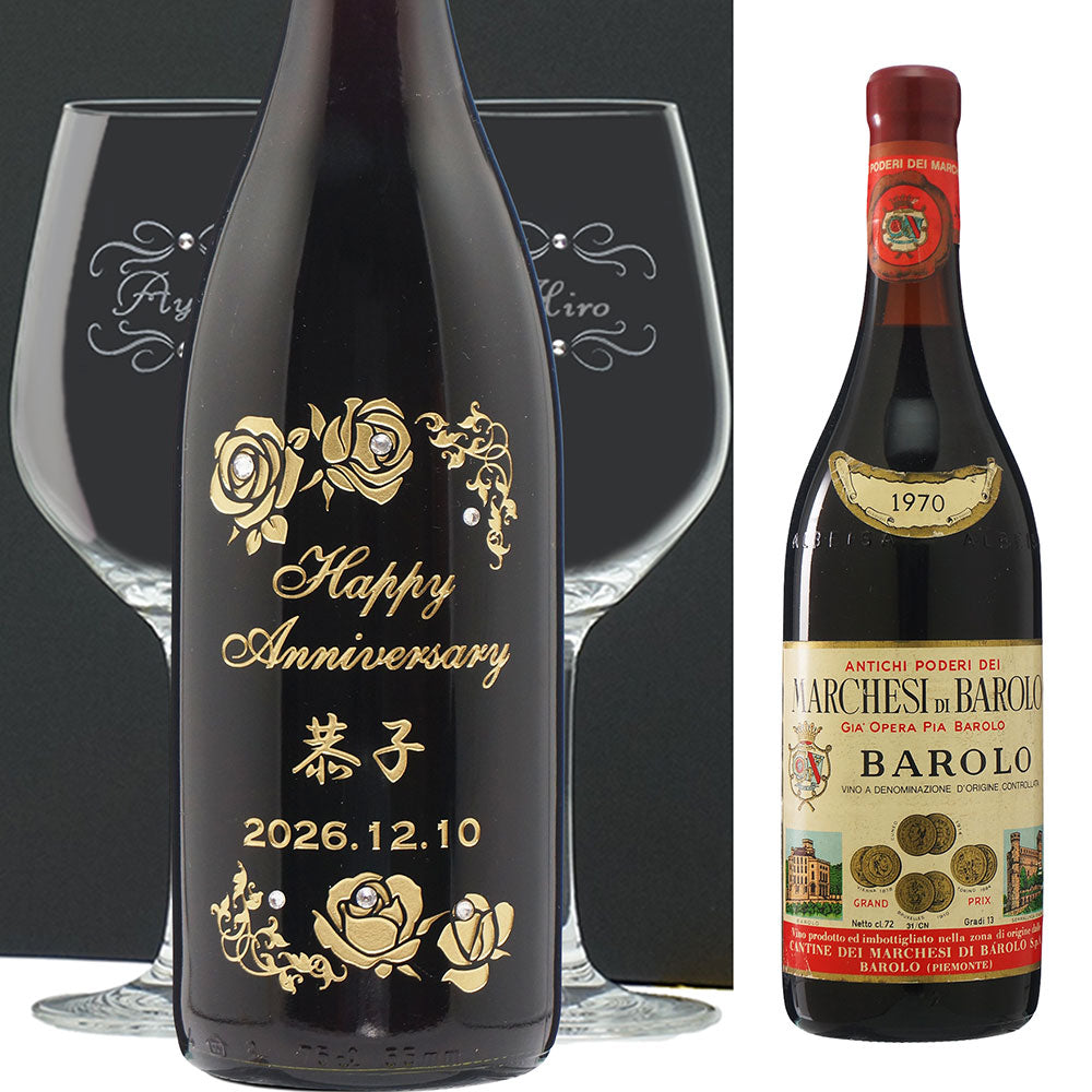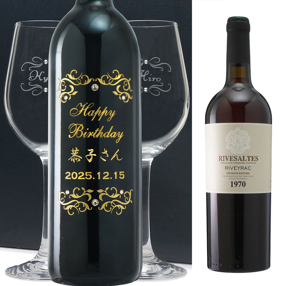 1970年に収穫されたブドウで作られた生まれ年ワインに、名前やメッセージを彫刻し、ペアグラスとともに贈るオーダーメイドギフト。心に残る、感動のプレゼントです。