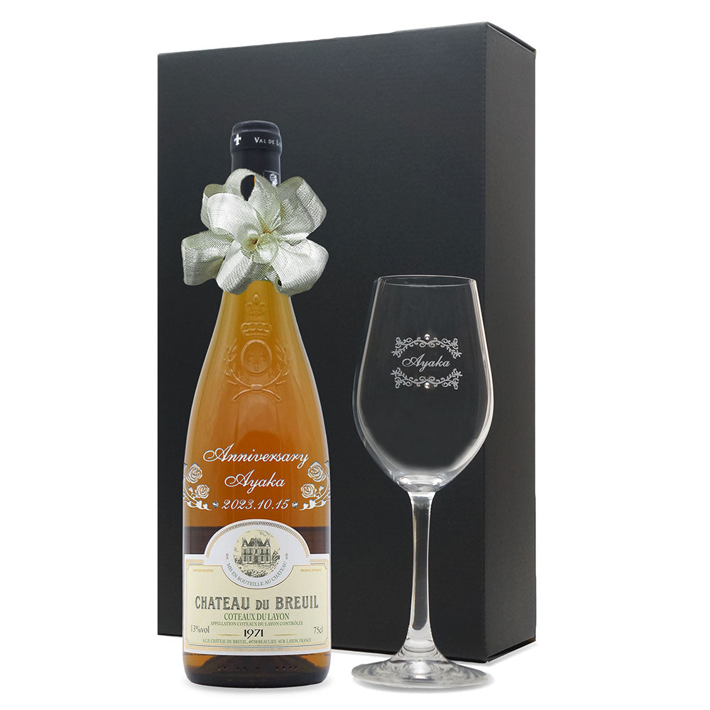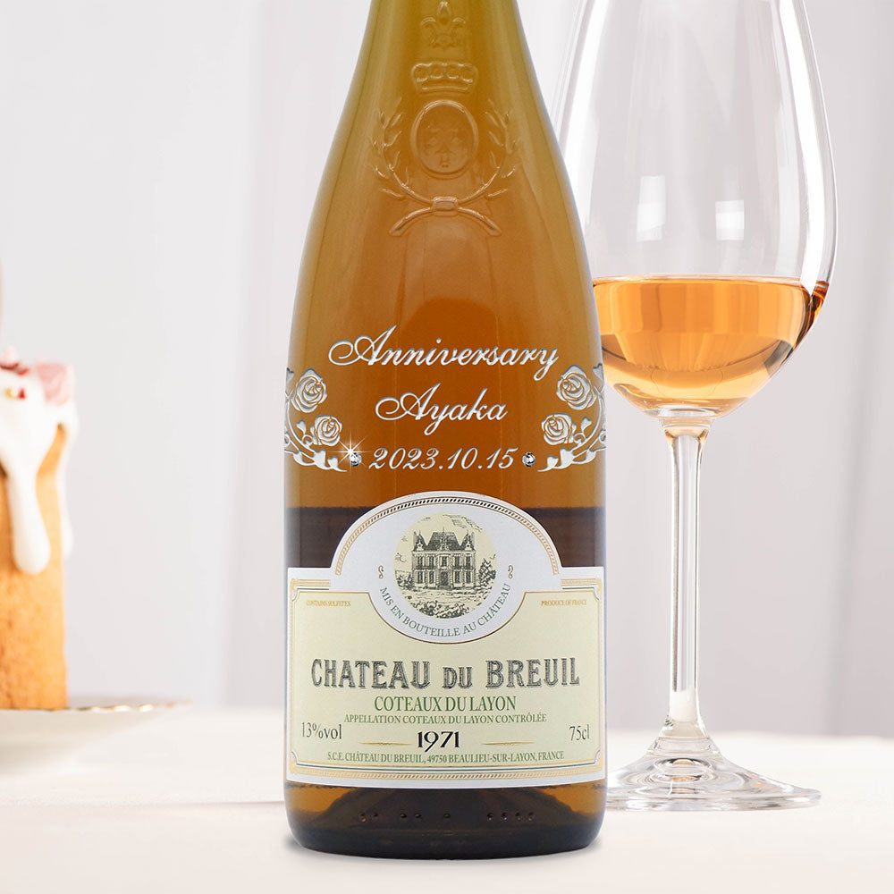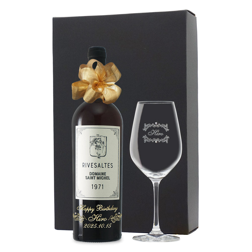 1971年に収穫されたブドウで作られた生まれ年ワインに、名前やメッセージを彫刻し、ワイングラスとともに贈る特別なオーダーメイドギフト。誕生日や記念日に、大切な方への感動を演出します。