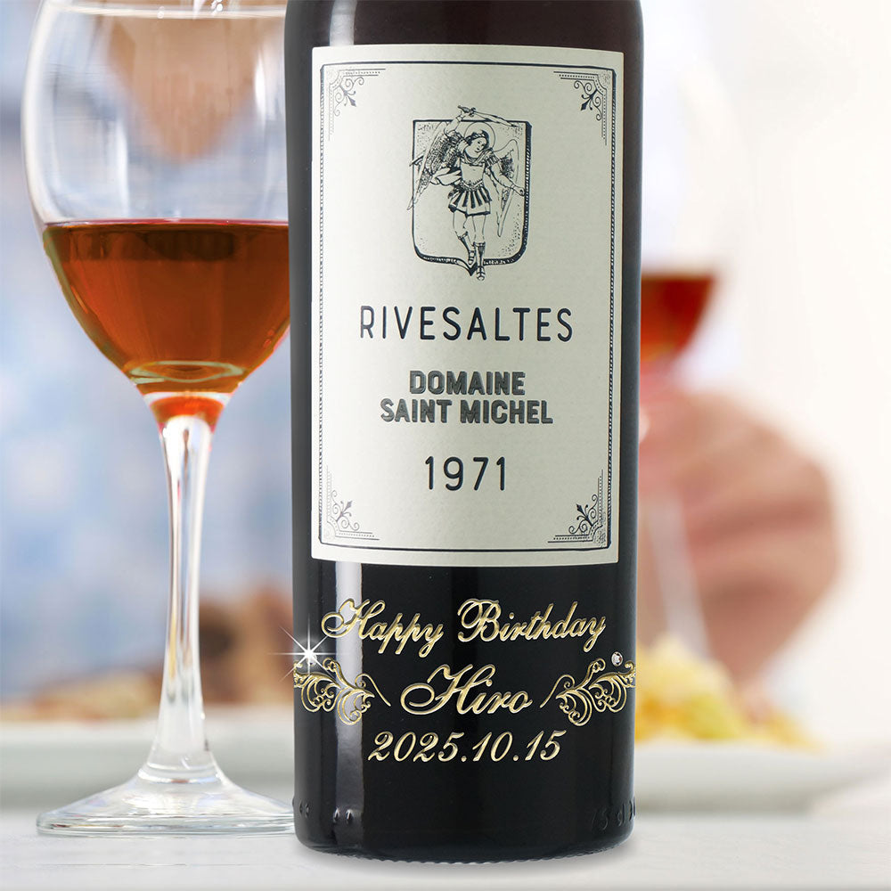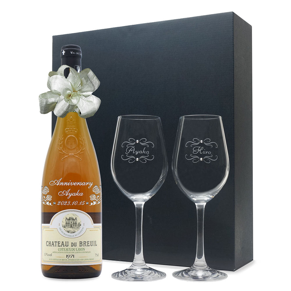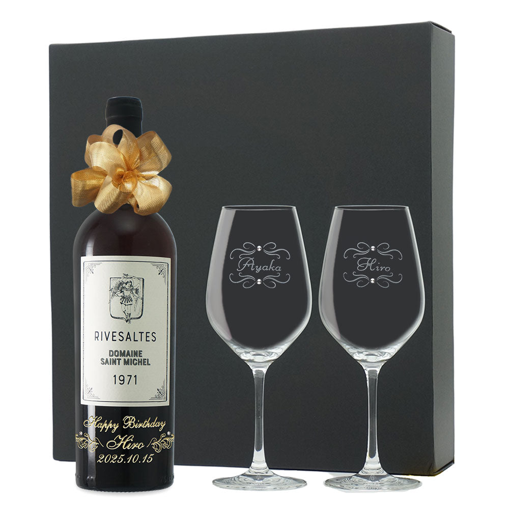 1971年に収穫されたブドウで作られた生まれ年ワインに、名前やメッセージを彫刻し、ペアグラスとともに贈るオーダーメイドギフト。心に残る、感動のプレゼントです。