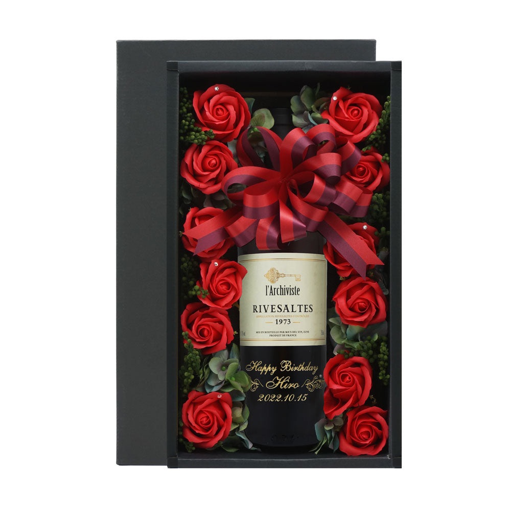 1973年 生まれ年ワインとバラのセット 名前入り彫刻のお酒 昭和48年