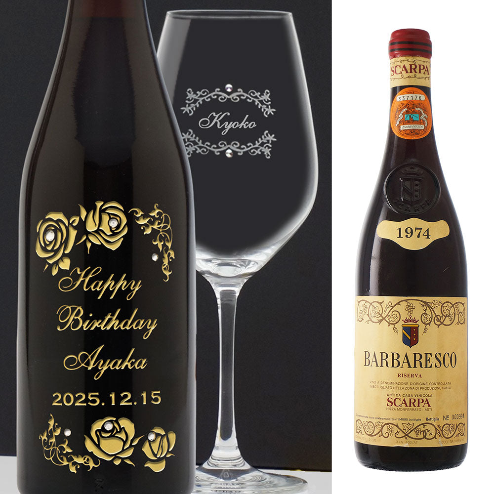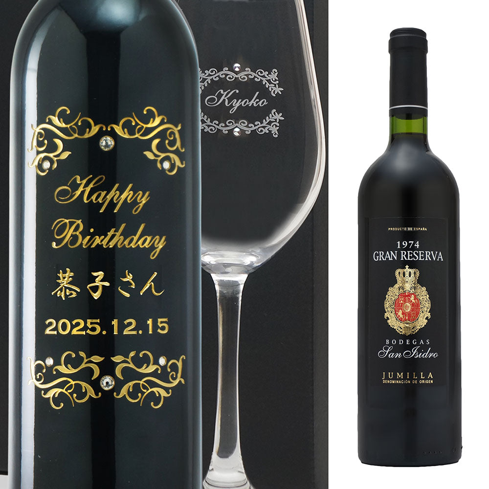 1974年 生まれ年ワイン グラスのセット 名前入り彫刻のお酒 昭和49年