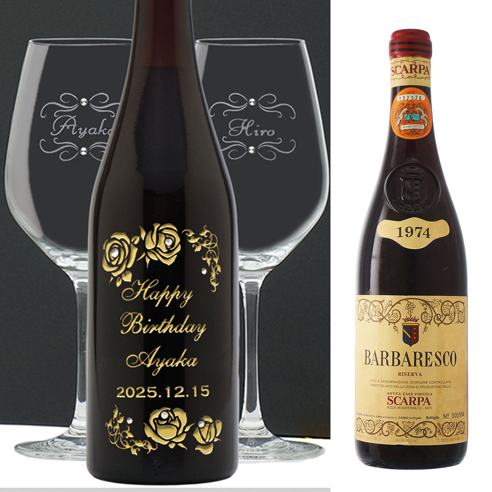 1974年 生まれ年ワイン ペアグラスのセット 名前入り彫刻のお酒 昭和49年