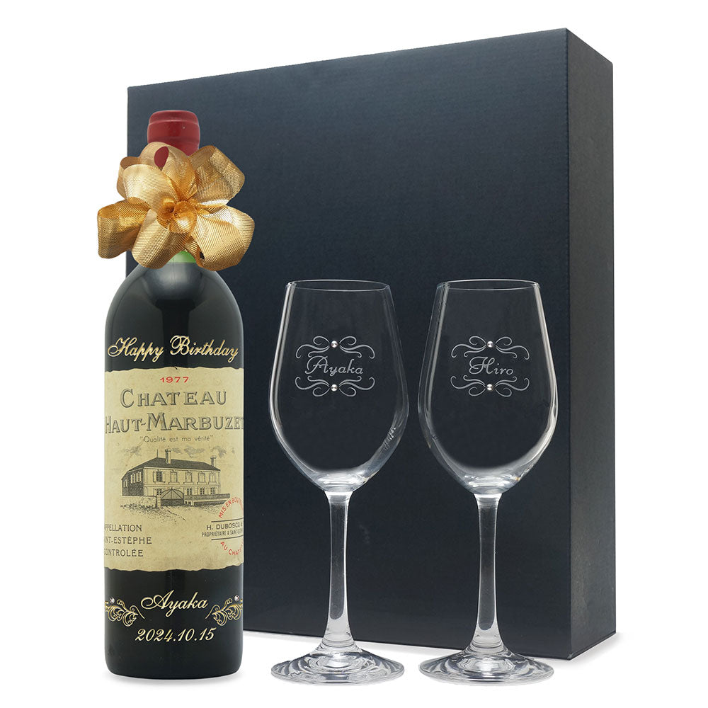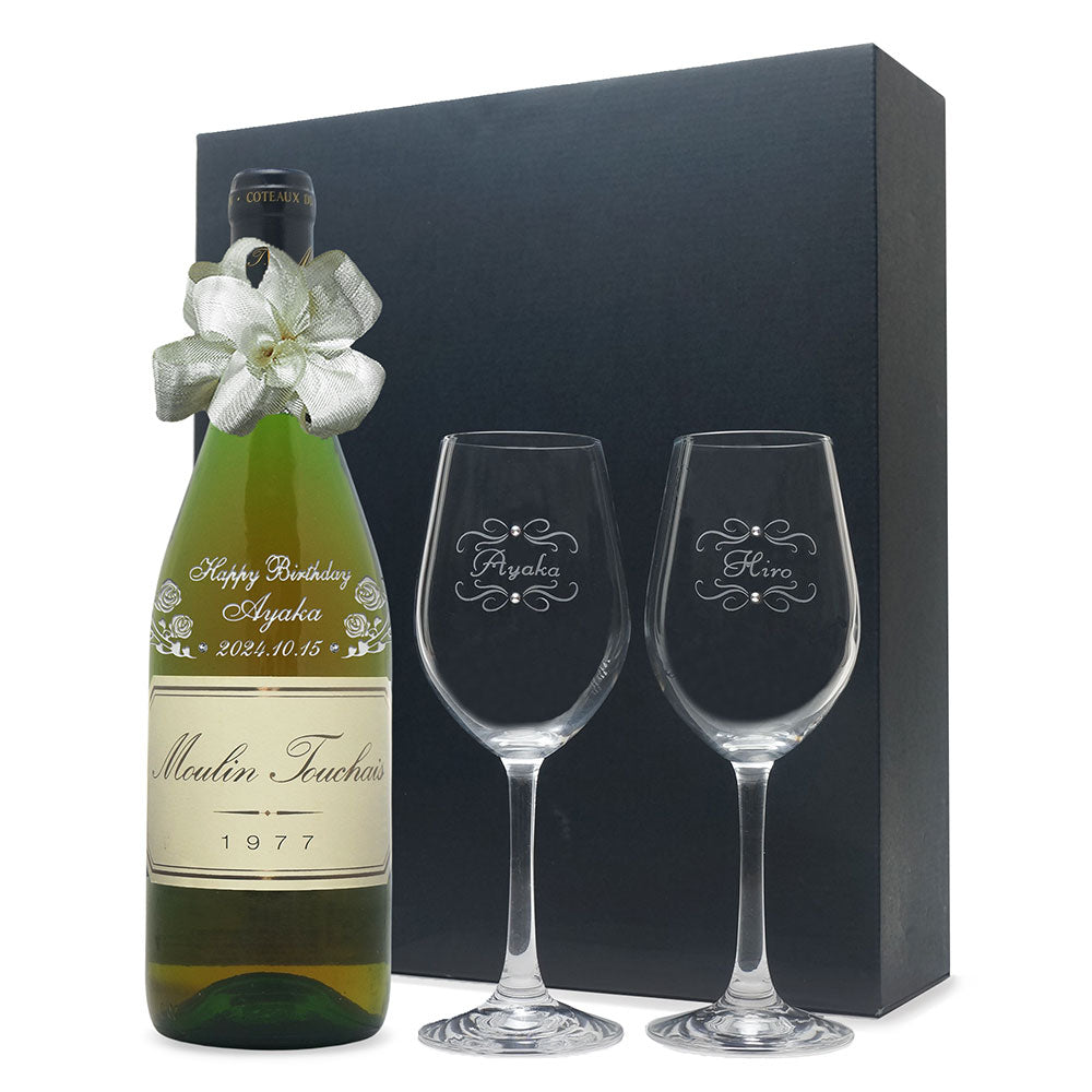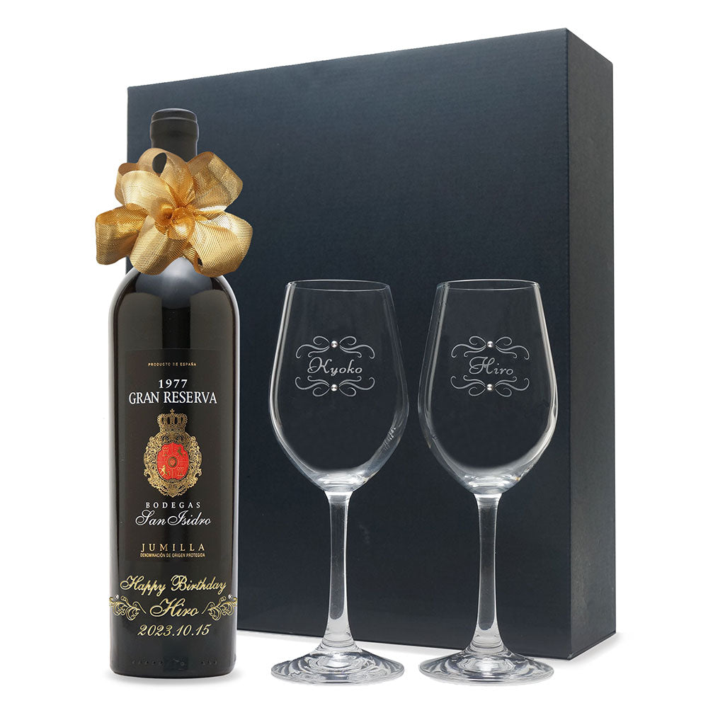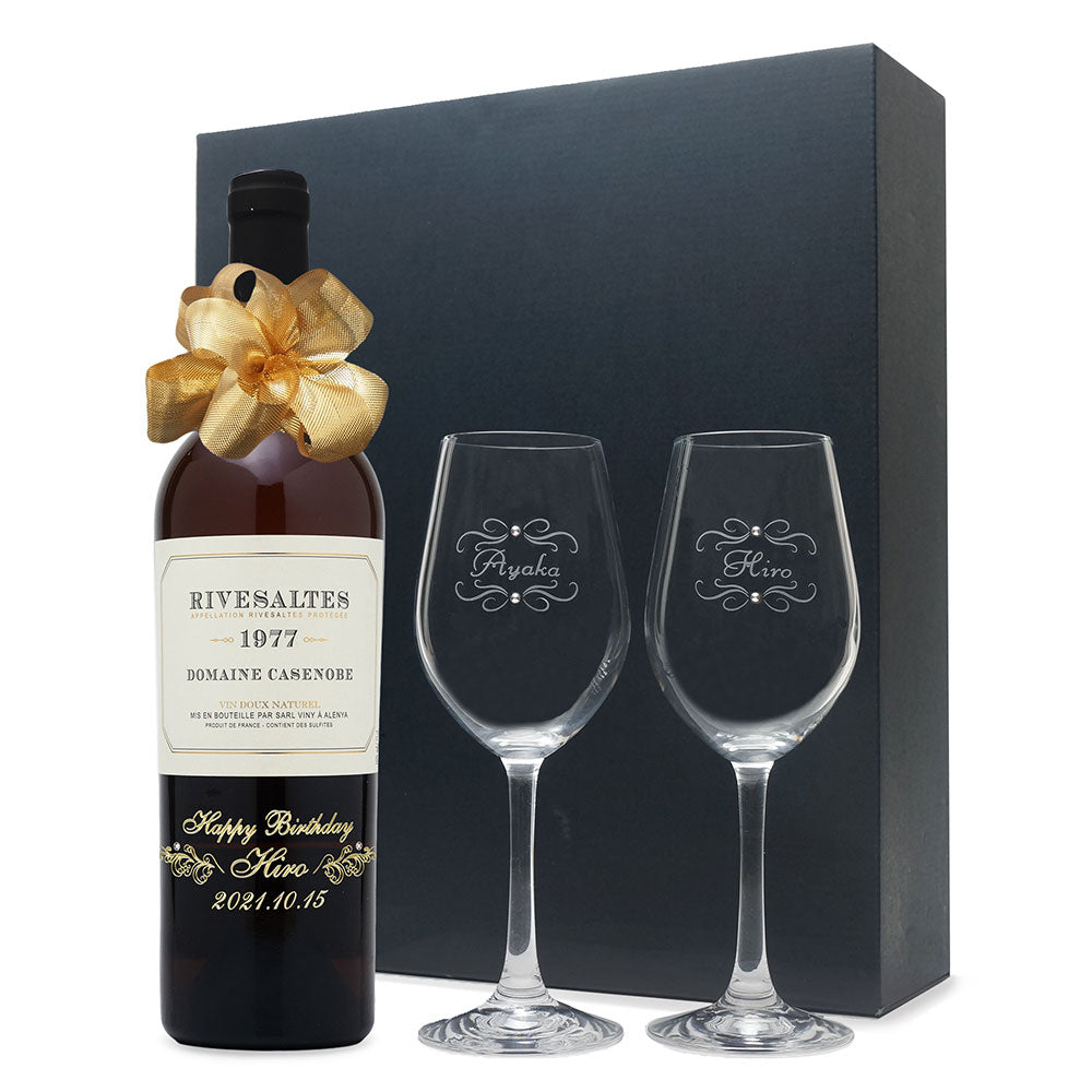 1977年 生まれ年ワイン ペアグラスのセット 名前入り彫刻のお酒 昭和52年