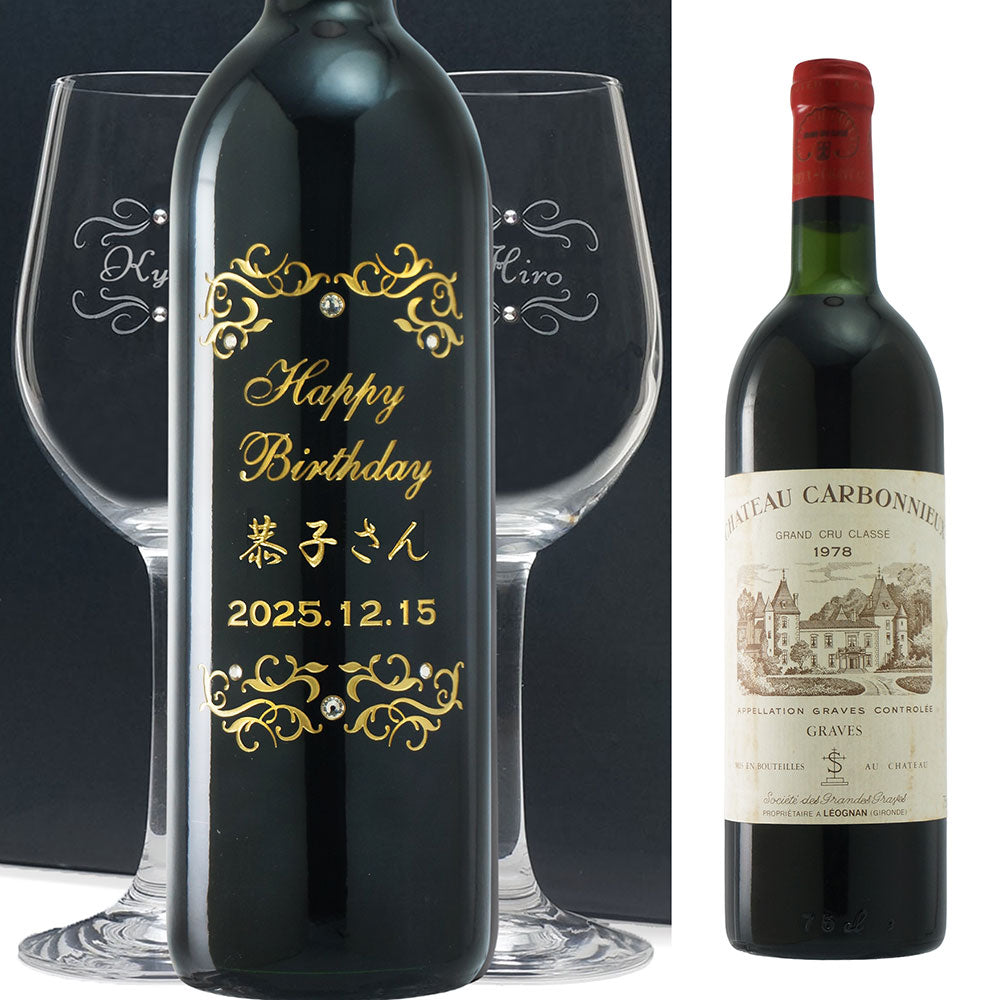 1978年に収穫されたブドウで作られた生まれ年ワインに、名前やメッセージを彫刻し、ペアグラスとともに贈るオーダーメイドギフト。心に残る、感動のプレゼントです。