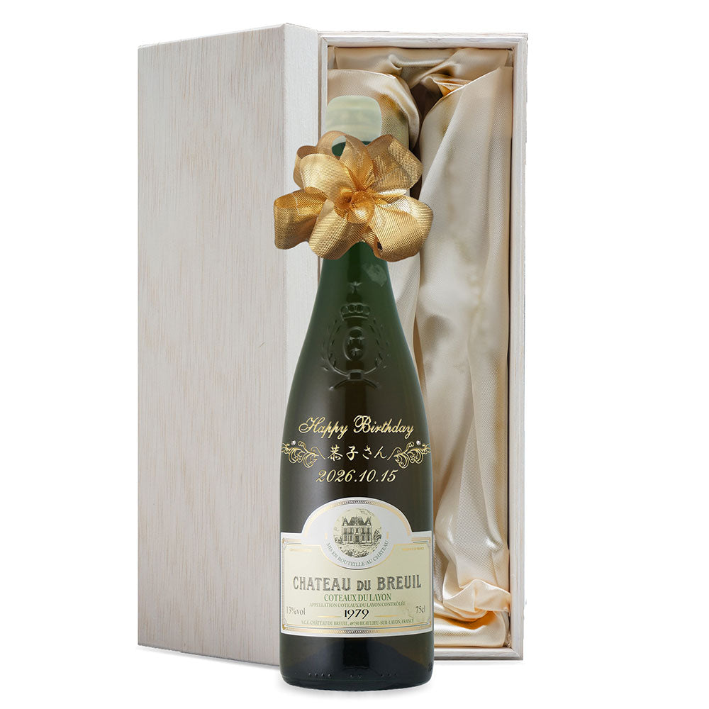 1979年に収穫されたブドウで作られた生まれ年ワインに、名前やメッセージを彫刻して贈る、特別なオーダーメイドギフト。誕生日や記念日に、世界でひとつだけの感動をお届けします。