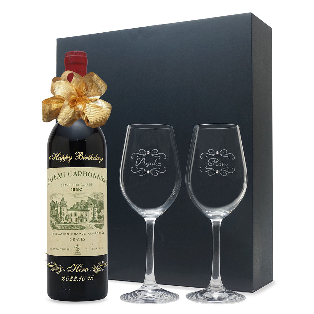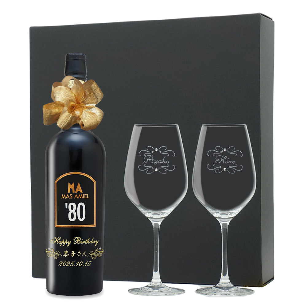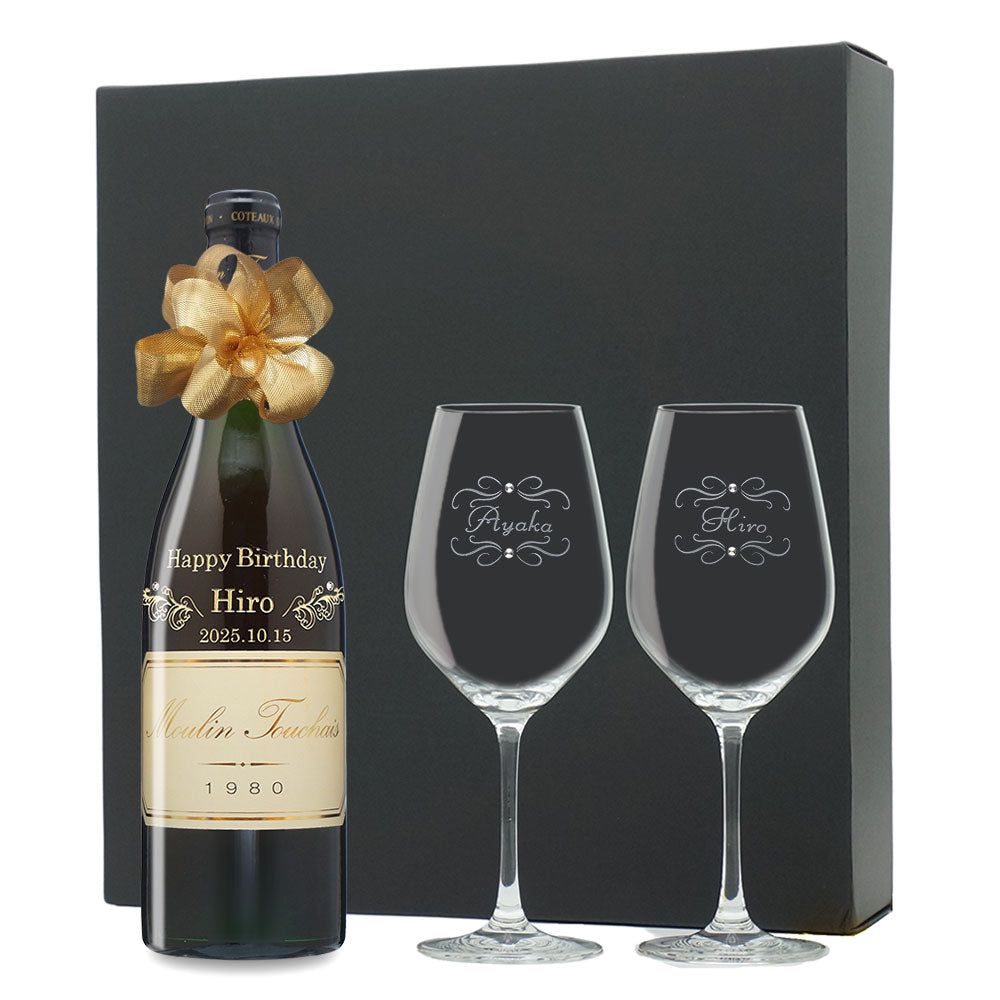 1980年 生まれ年ワイン ペアグラスのセット 名前入り彫刻のお酒 昭和55年