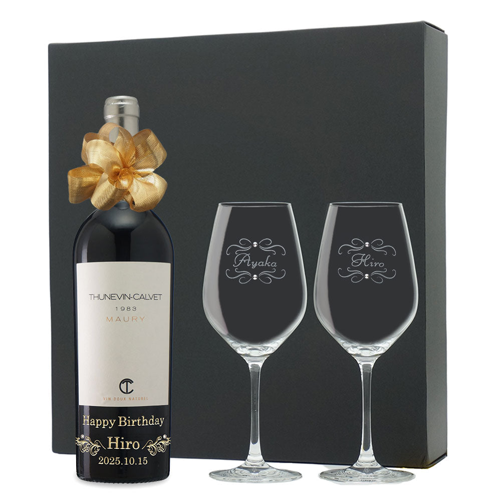 1983年 生まれ年ワイン ペアグラスのセット 名前入り彫刻のお酒 昭和58年