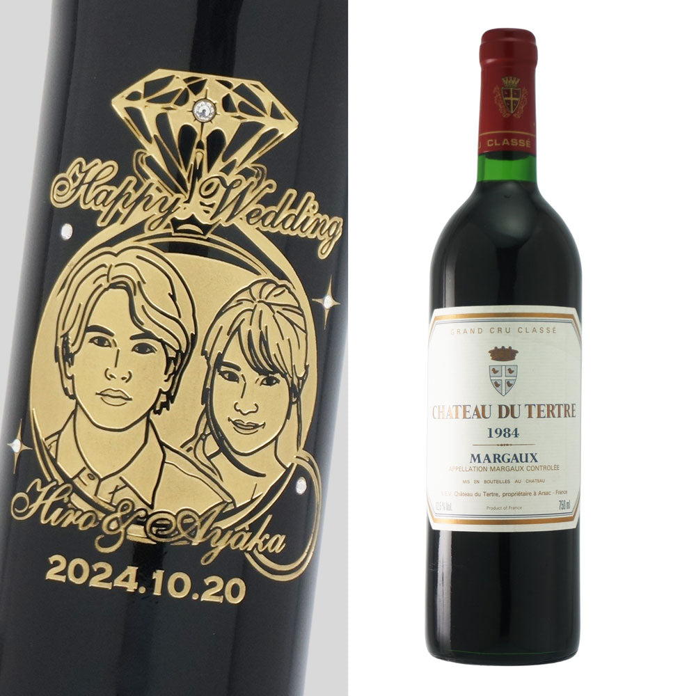 1984年 結婚記念年 / 誕生日 生まれ年ワイン 名前 似顔絵の彫刻 木箱入 昭和59年