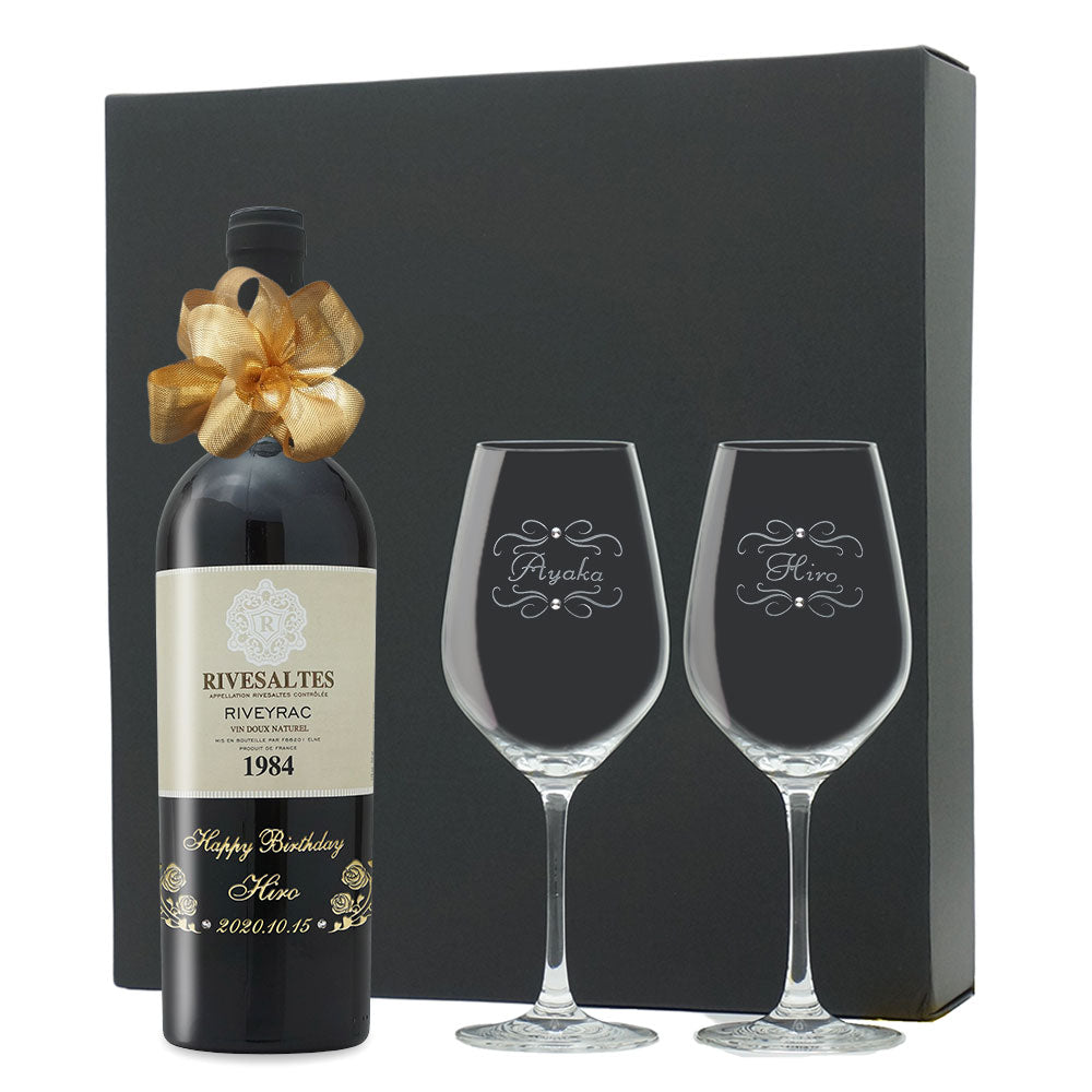 1984年 生まれ年ワイン ペアグラスのセット 名前入り彫刻のお酒 昭和59年