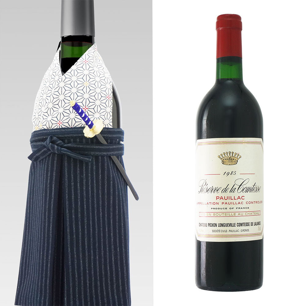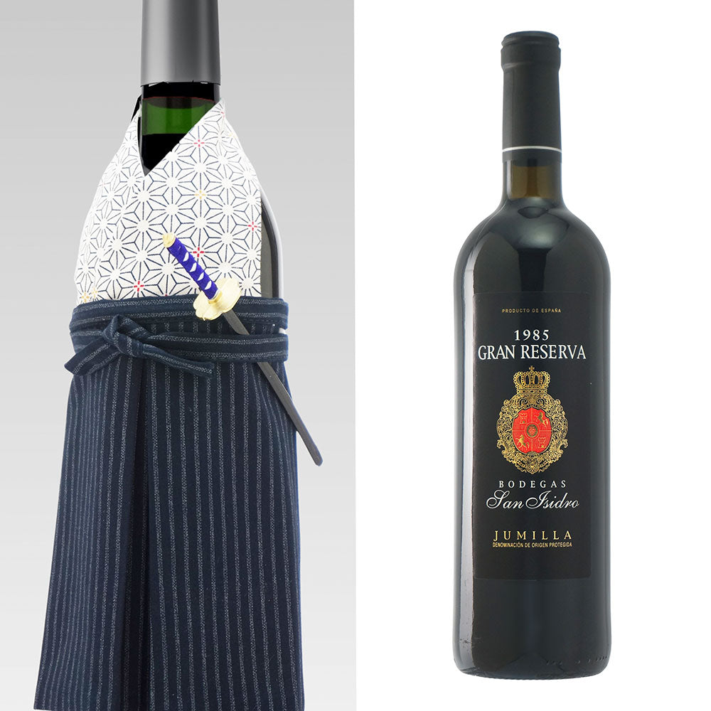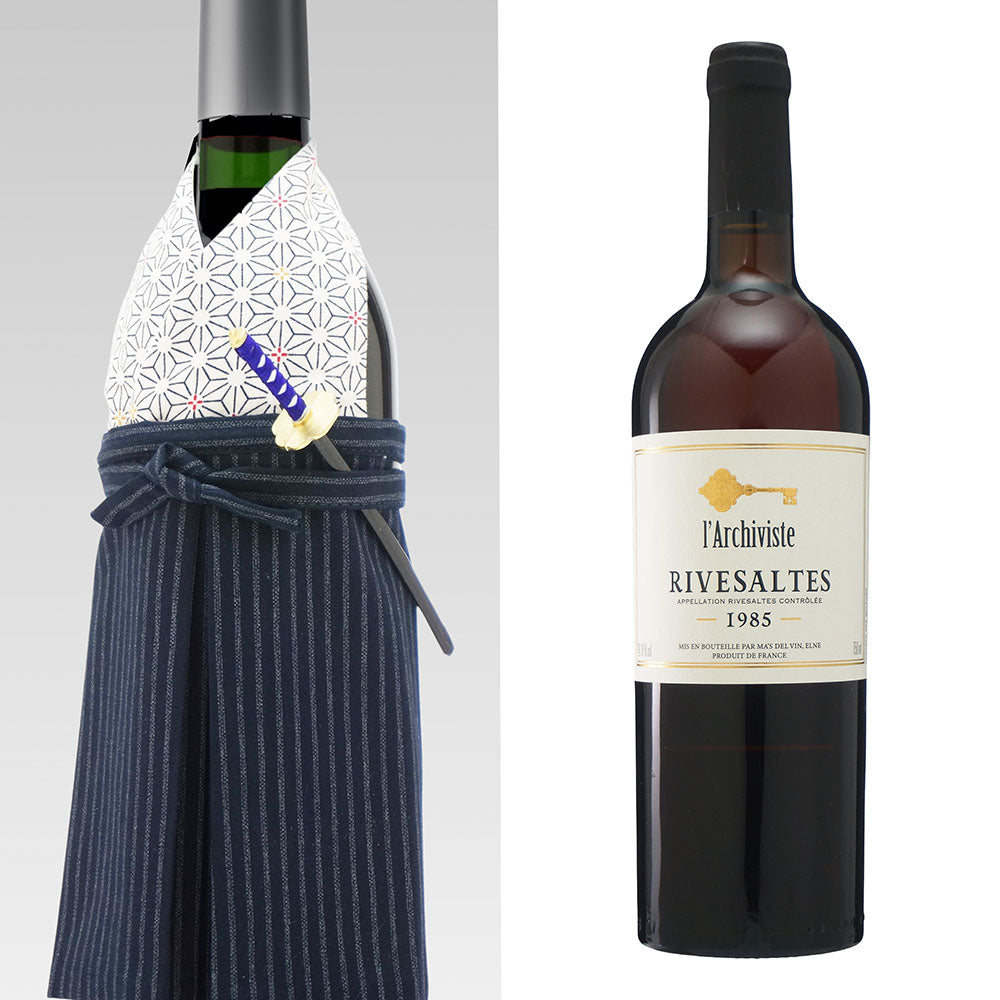 1985年に収穫されたブドウで醸造・熟成された生まれ年ワインに着物をかぶせた「世界に1つ」の贈り物です。