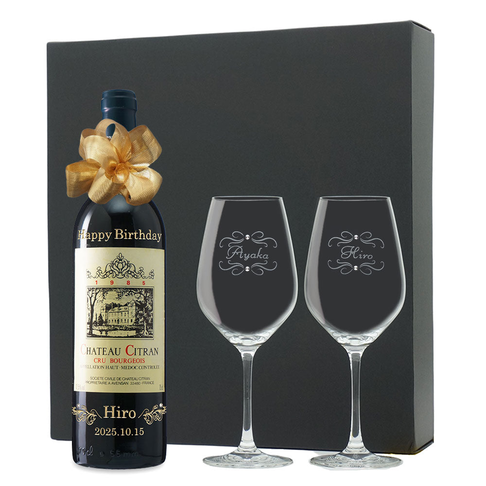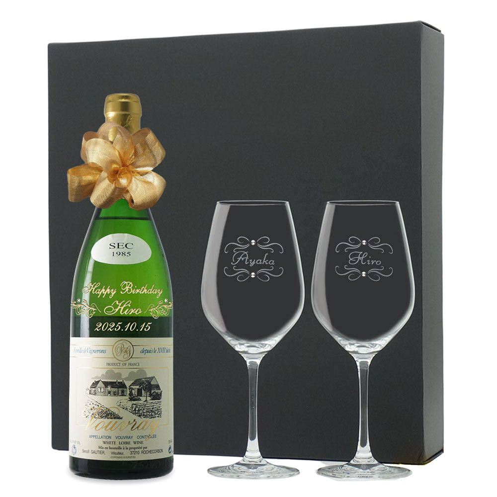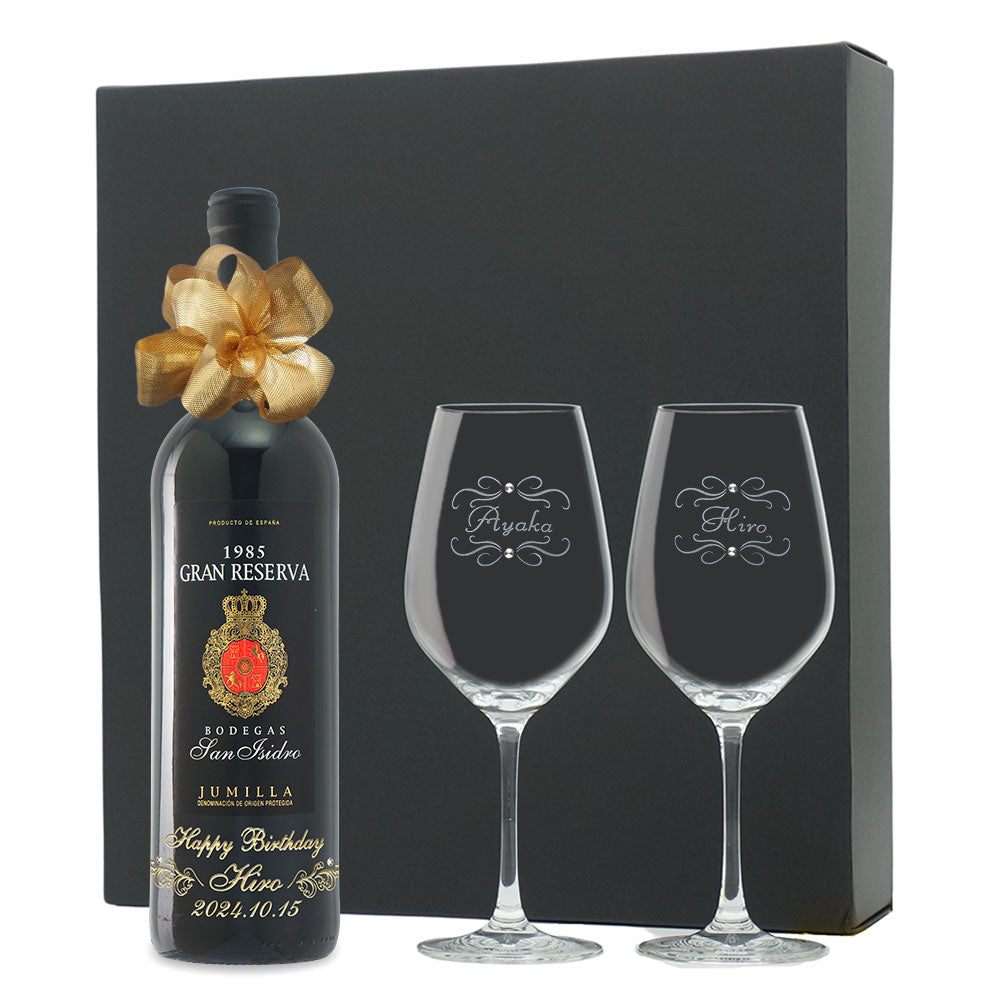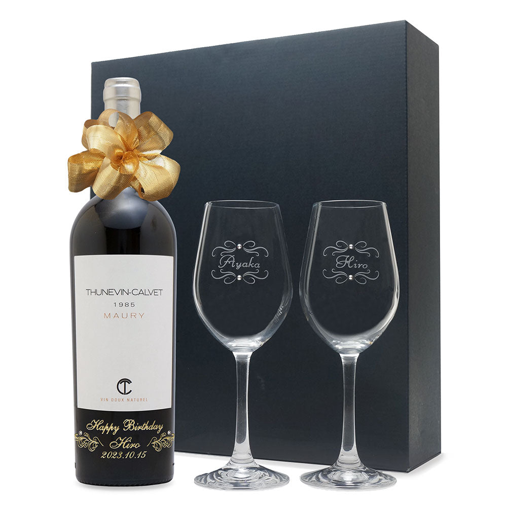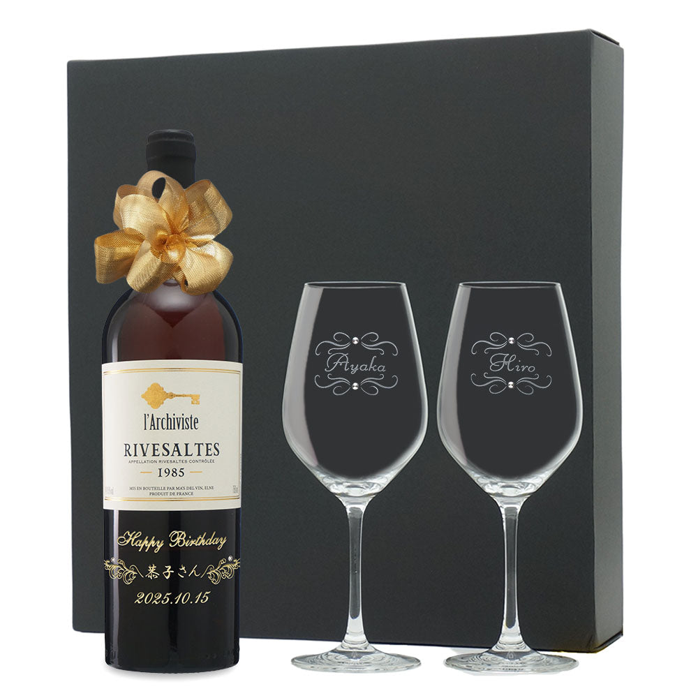 1985年 生まれ年ワイン ペアグラスのセット 名前入り彫刻のお酒 昭和60年