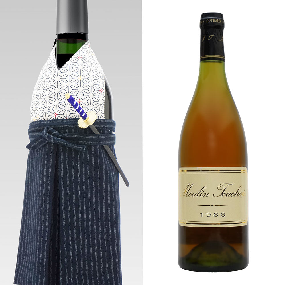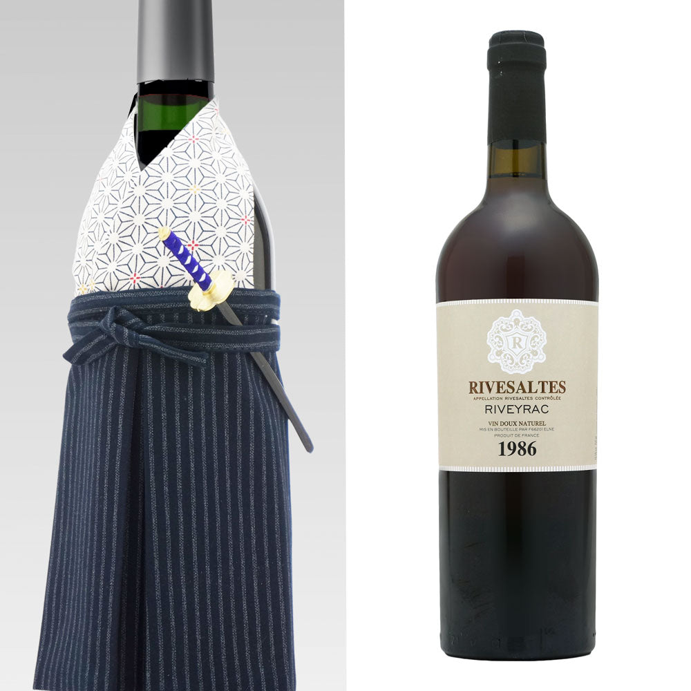 1986年に収穫されたブドウで醸造・熟成された生まれ年ワインに着物をかぶせた「世界に1つ」の贈り物です。