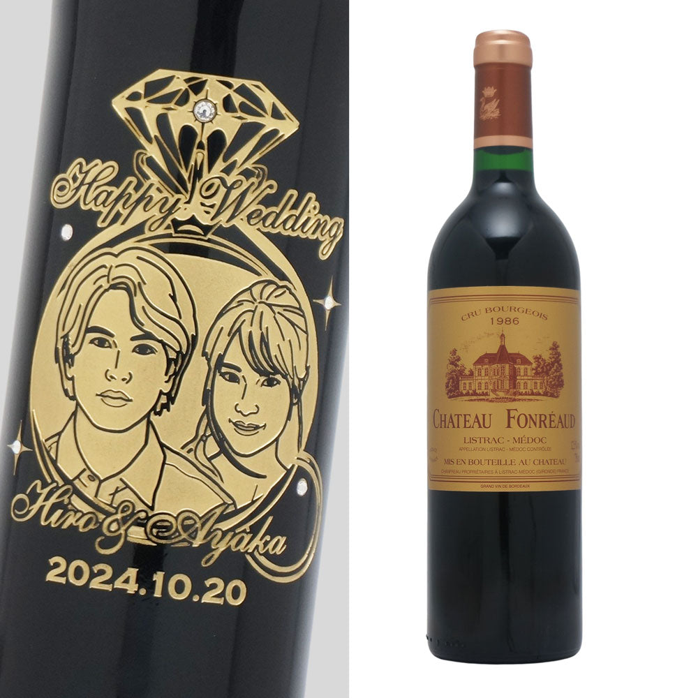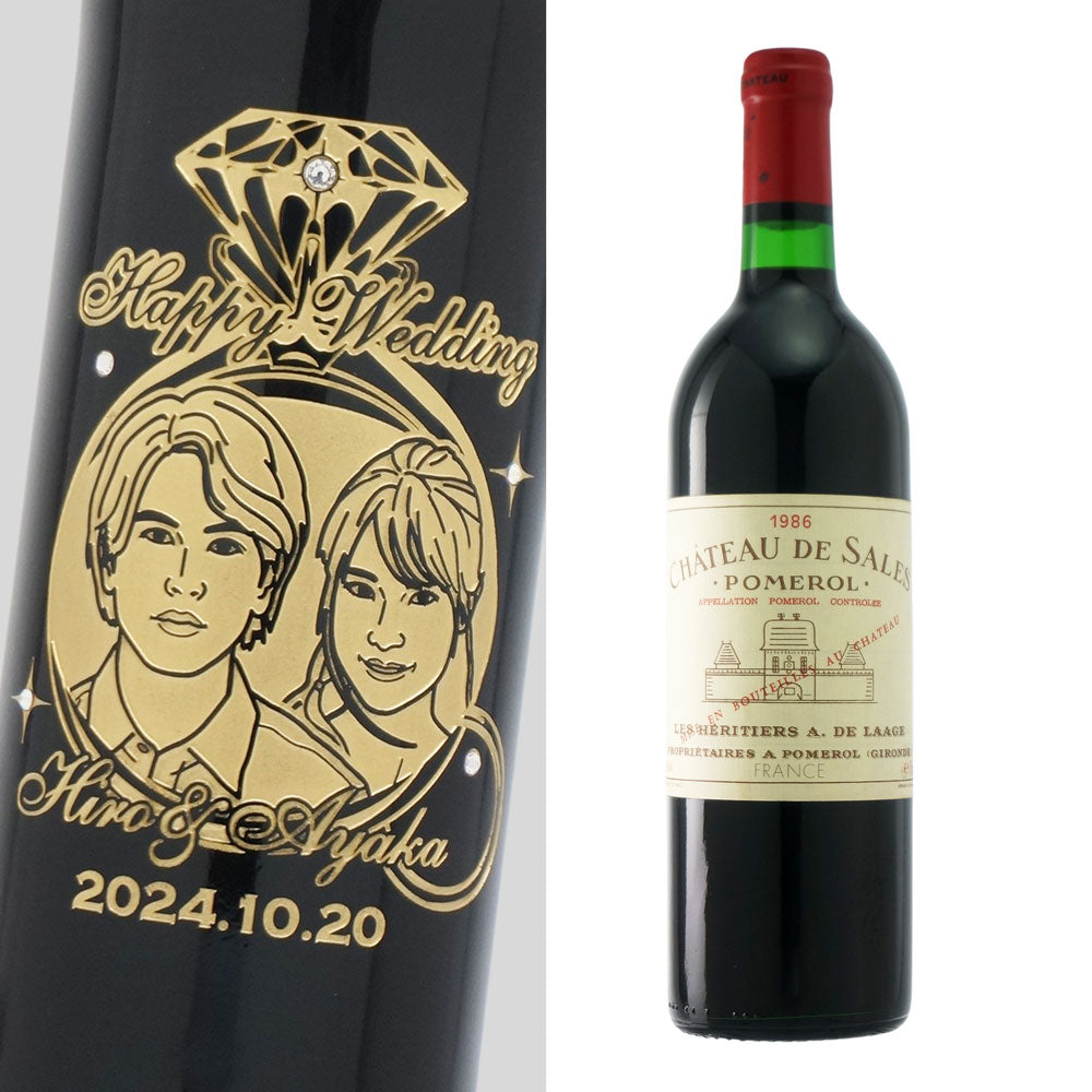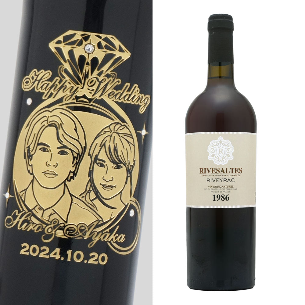 1986年 結婚記念年 / 誕生日 生まれ年ワイン 名前 似顔絵の彫刻 木箱入 昭和61年