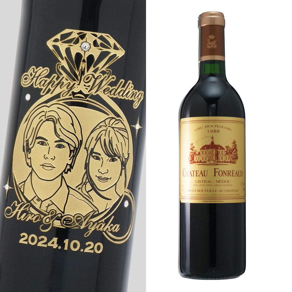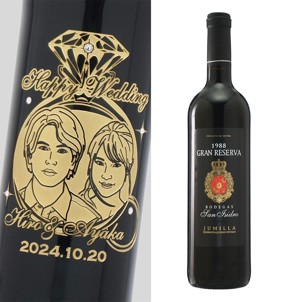 1988年 結婚記念年 / 誕生日 生まれ年ワイン 名前 似顔絵の彫刻 木箱入 昭和63年