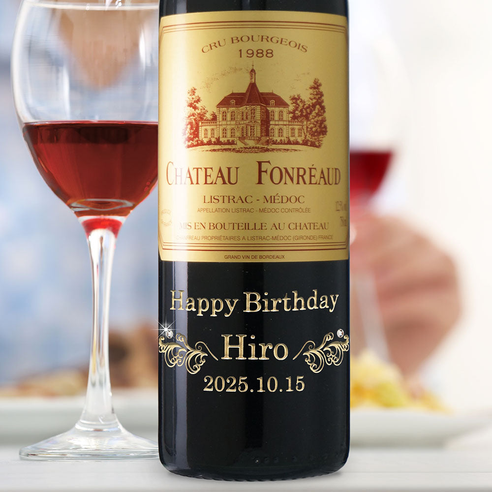 誕生日プレゼントに生まれ年のワインに彫刻を入れて貰いました。とても喜んでもらえて本当に良かったです。