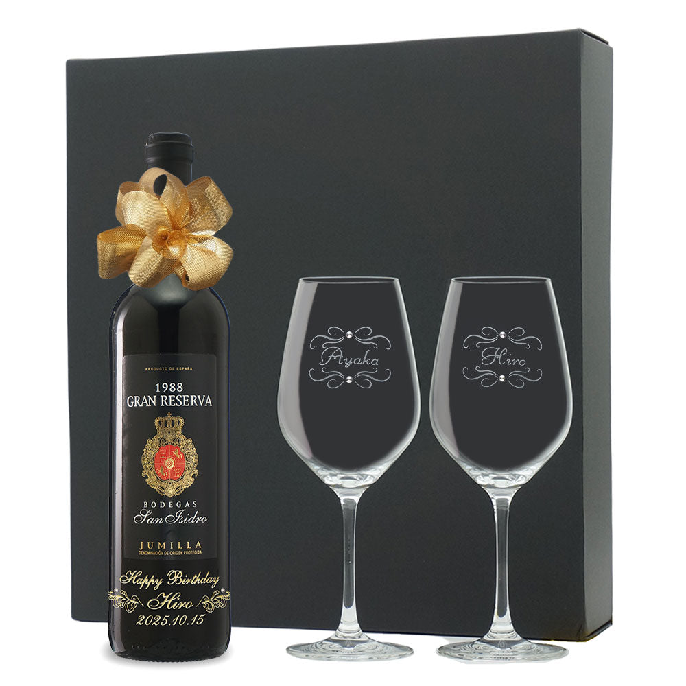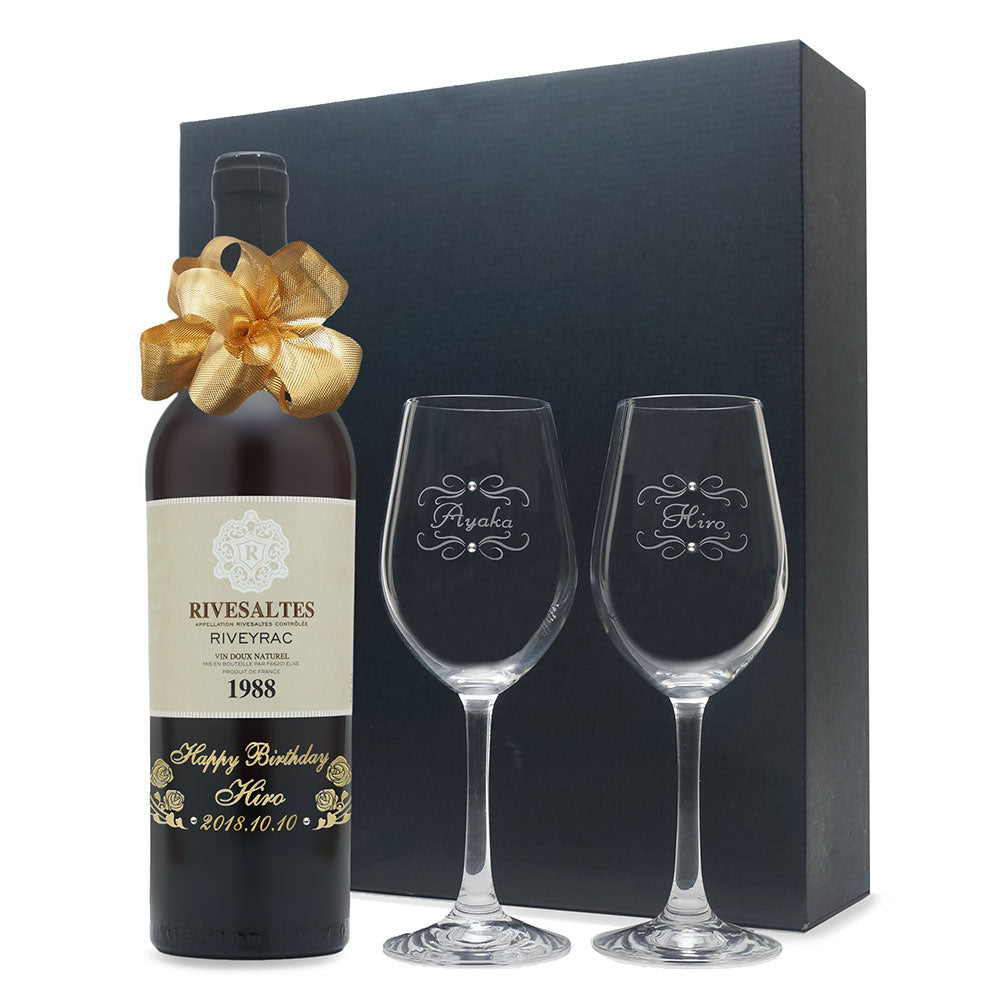 1988年 生まれ年ワイン ペアグラスのセット 名前入り彫刻のお酒 昭和63年