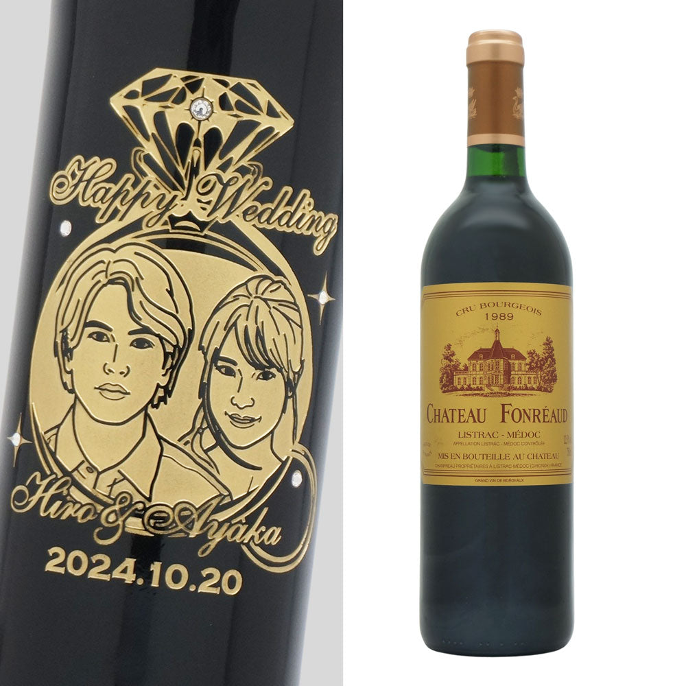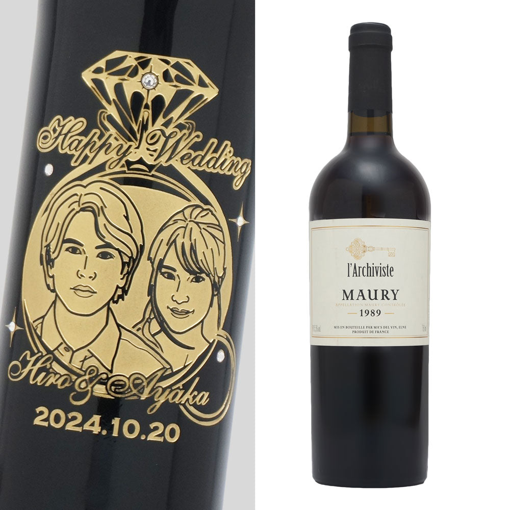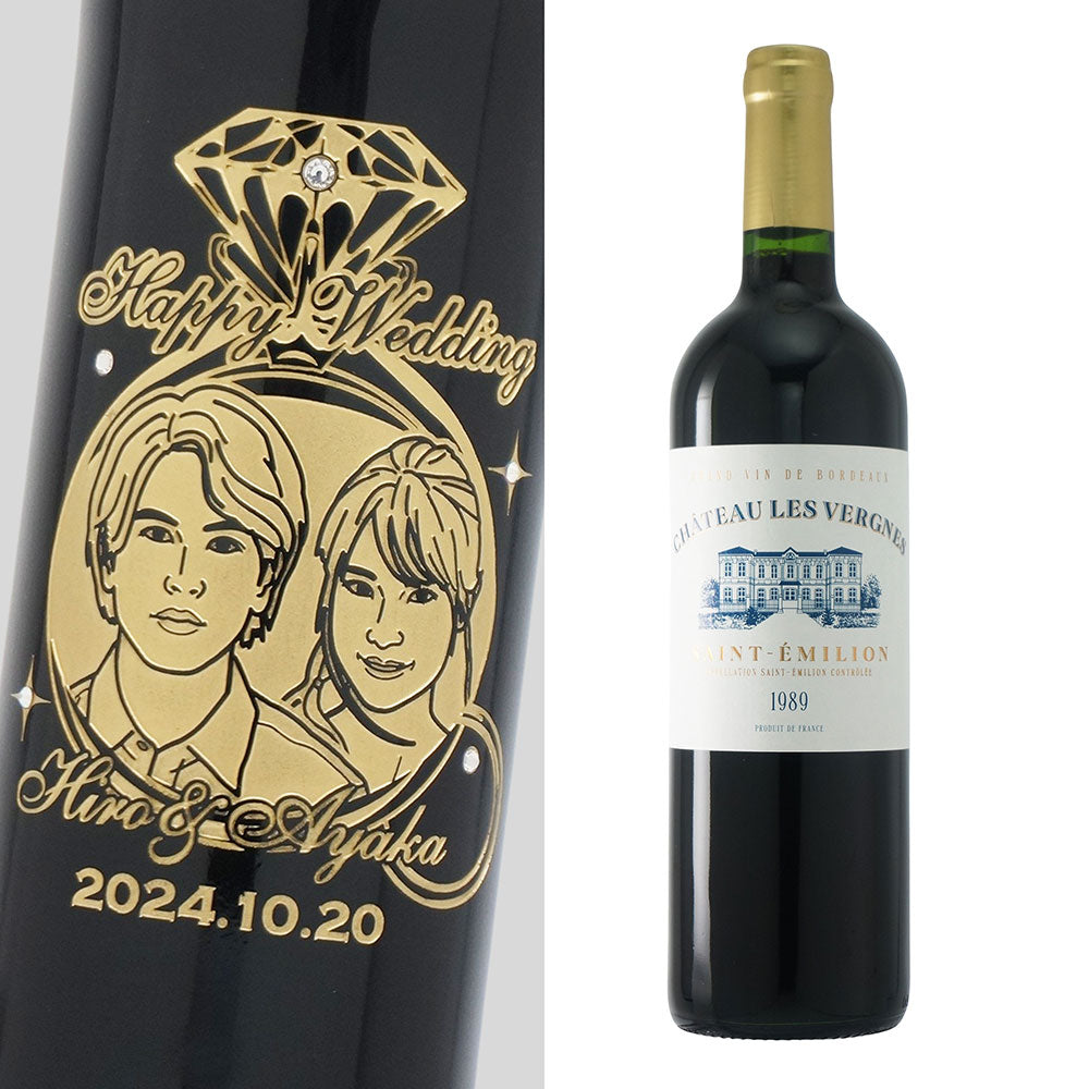 1989年 結婚記念年 / 誕生日 生まれ年ワイン 名前 似顔絵の彫刻 木箱入 昭和64年/平成元年
