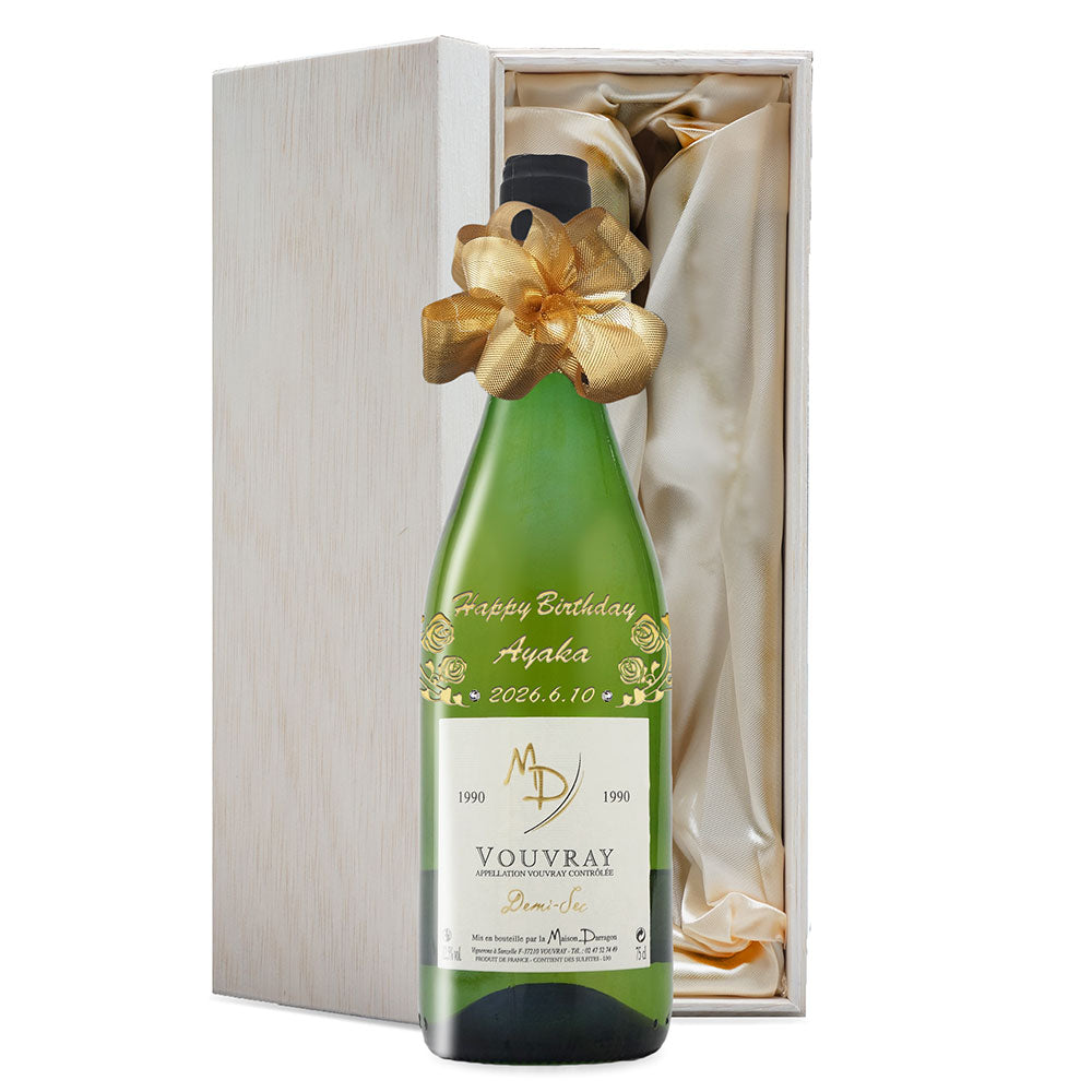 1990年に収穫されたブドウで作られた生まれ年ワインに、名前やメッセージを彫刻して贈る、特別なオーダーメイドギフト。誕生日や記念日に、世界でひとつだけの感動をお届けします。