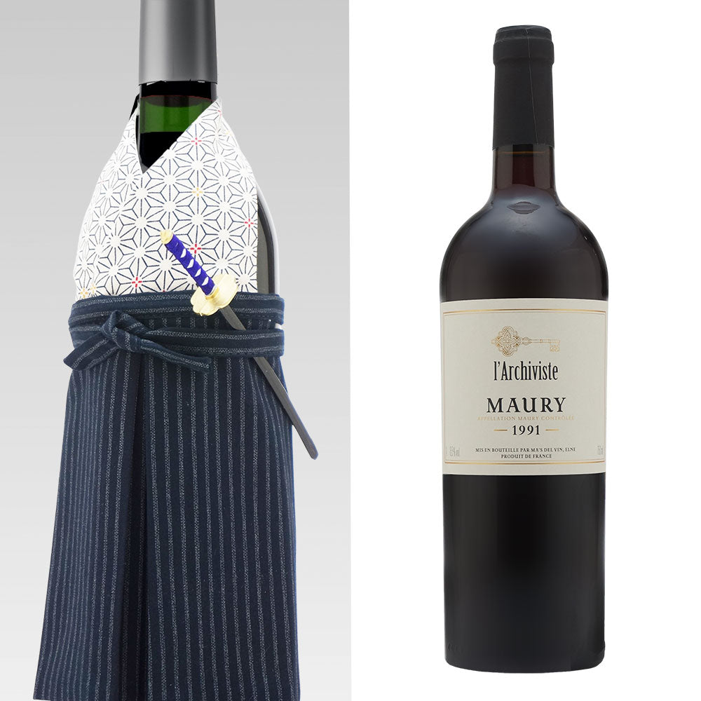 1991年に収穫されたブドウで醸造・熟成された生まれ年ワインに着物をかぶせた「世界に1つ」の贈り物です。