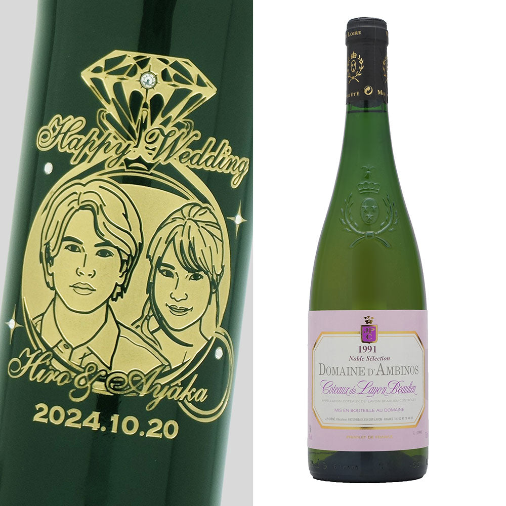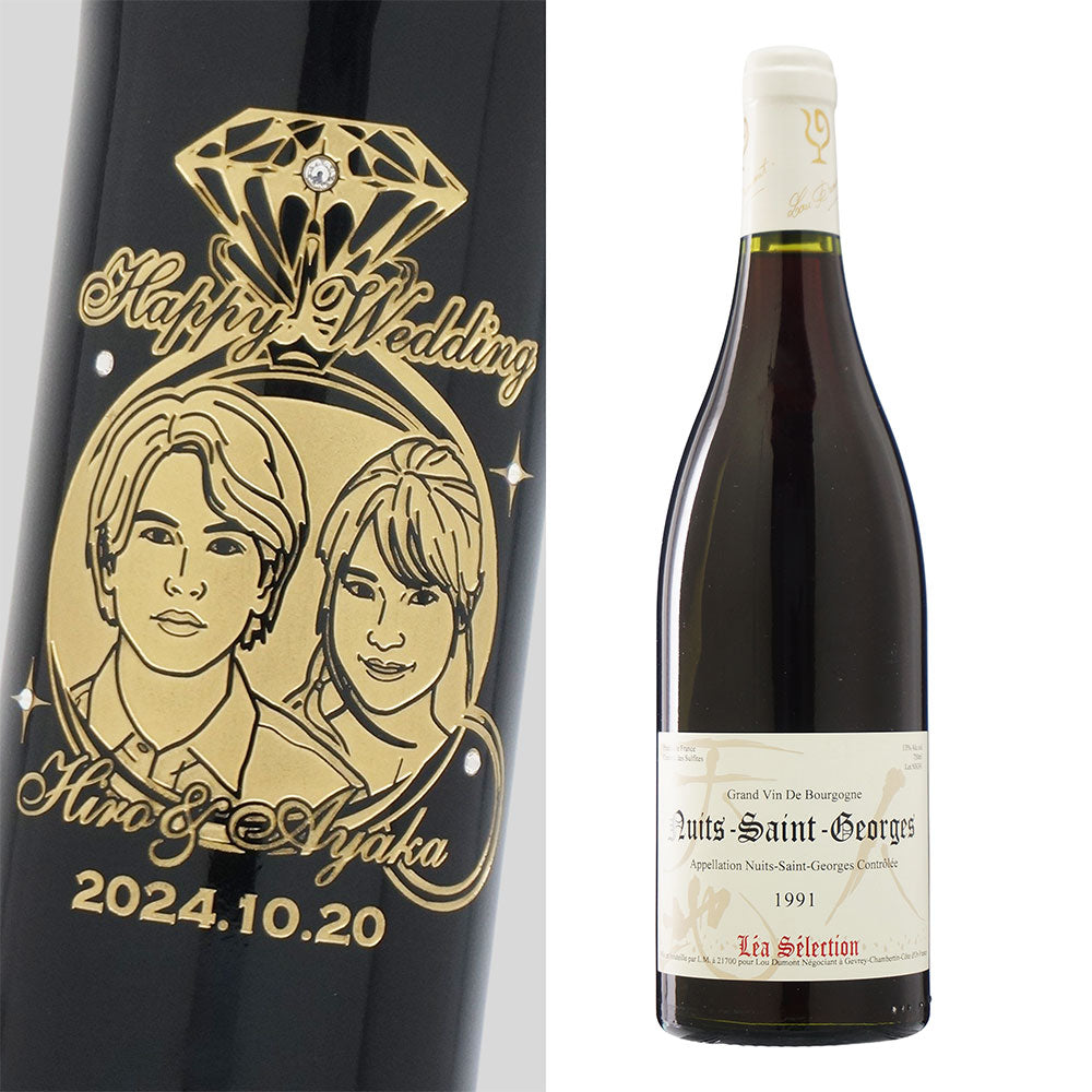 1991年 結婚記念年 / 誕生日 生まれ年ワイン 名前 似顔絵の彫刻 木箱入 平成3年