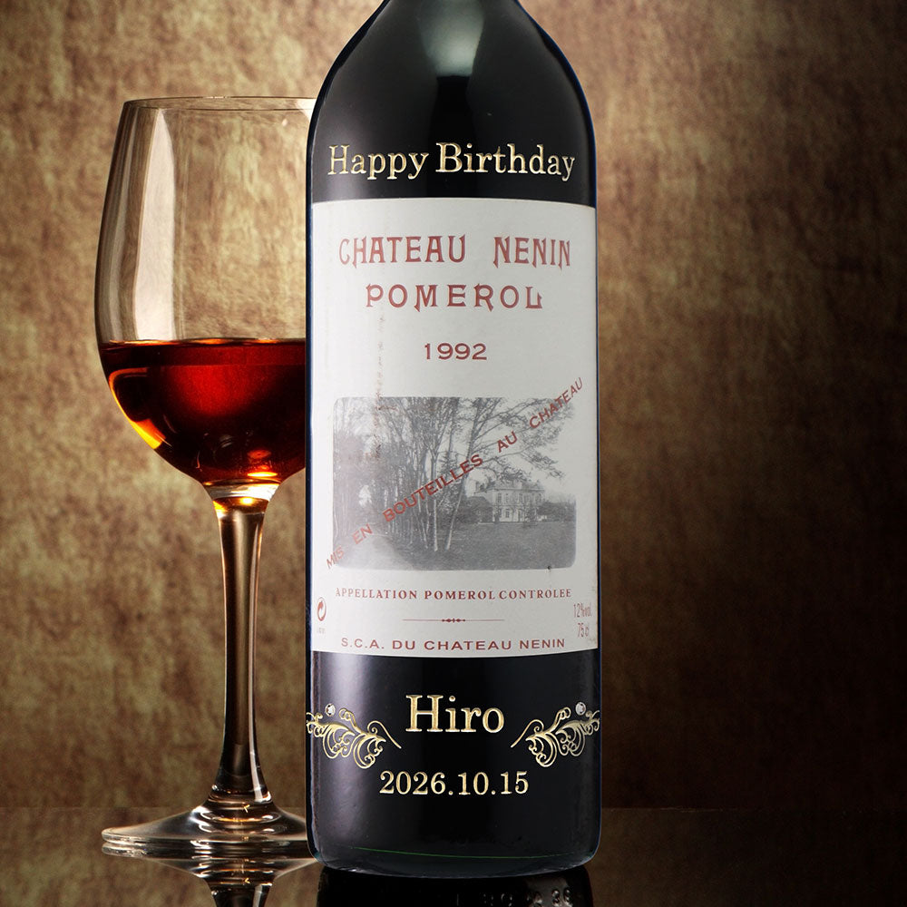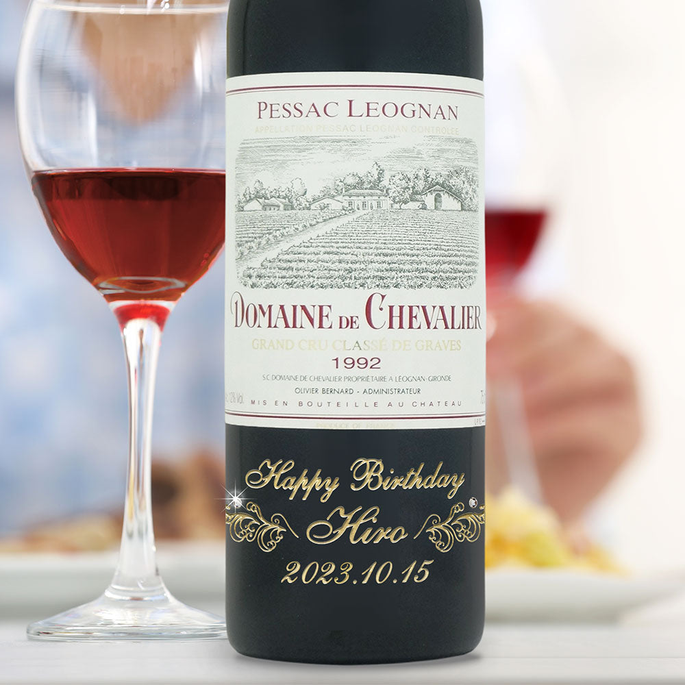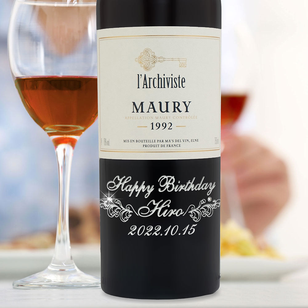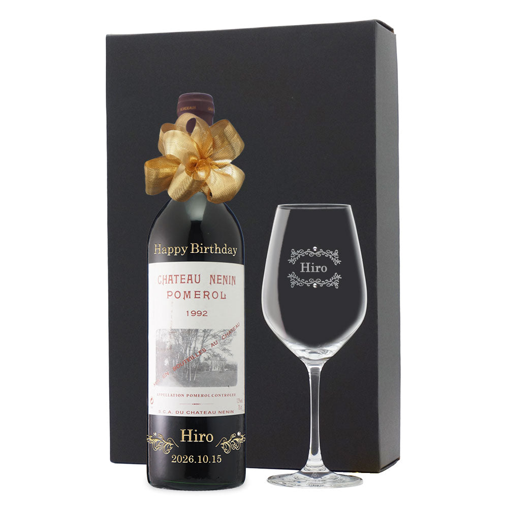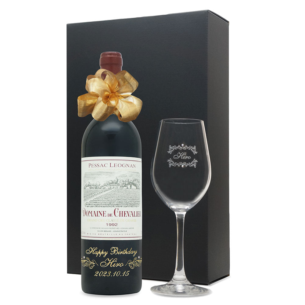1992年に収穫されたブドウで作られた生まれ年ワインに、名前やメッセージを彫刻し、ワイングラスとともに贈る特別なオーダーメイドギフト。
