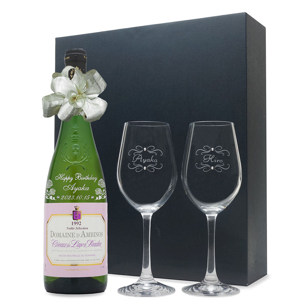 1992年 生まれ年ワイン ペアグラスのセット 名前入り彫刻のお酒 平成4年