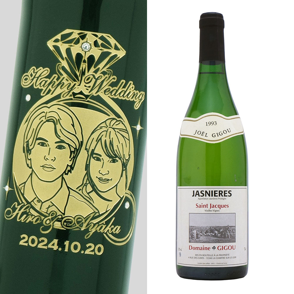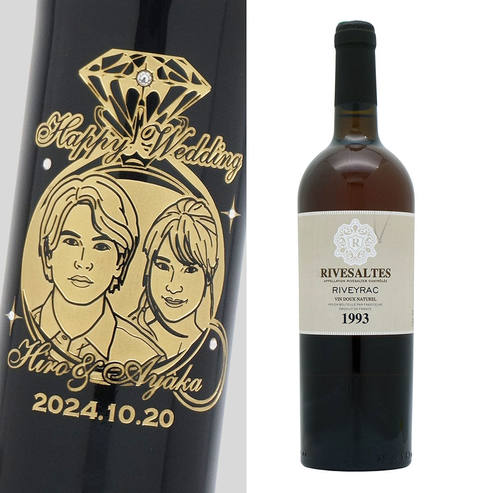 1993年に収穫されたブドウで作られた生まれ年ワインに、お名前やメッセージだけでなく、贈る方の似顔絵を彫刻することで、その人だけの特別な贈り物に仕上げます。