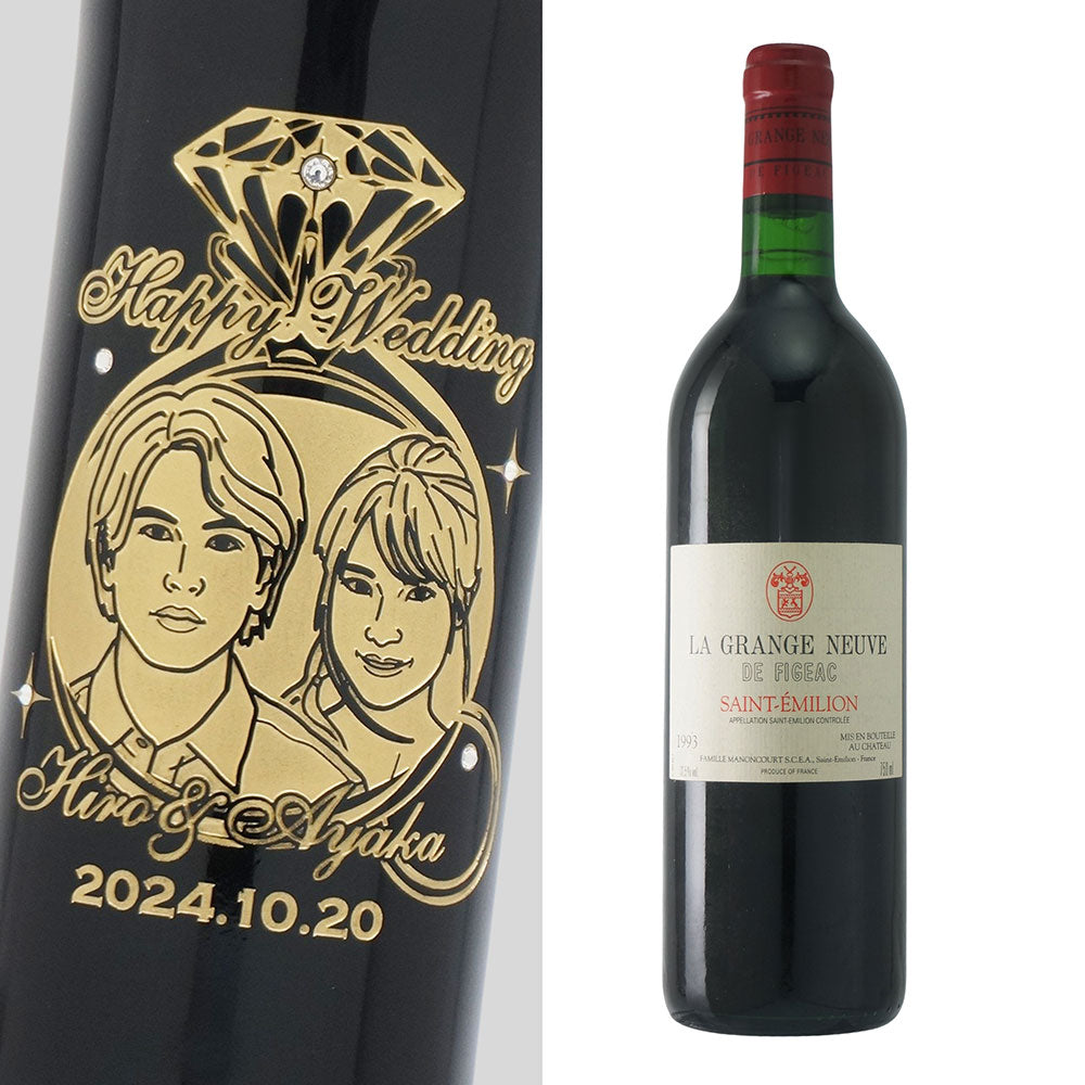 1993年 結婚記念年 / 誕生日 生まれ年ワイン 名前 似顔絵の彫刻 木箱入 平成5年