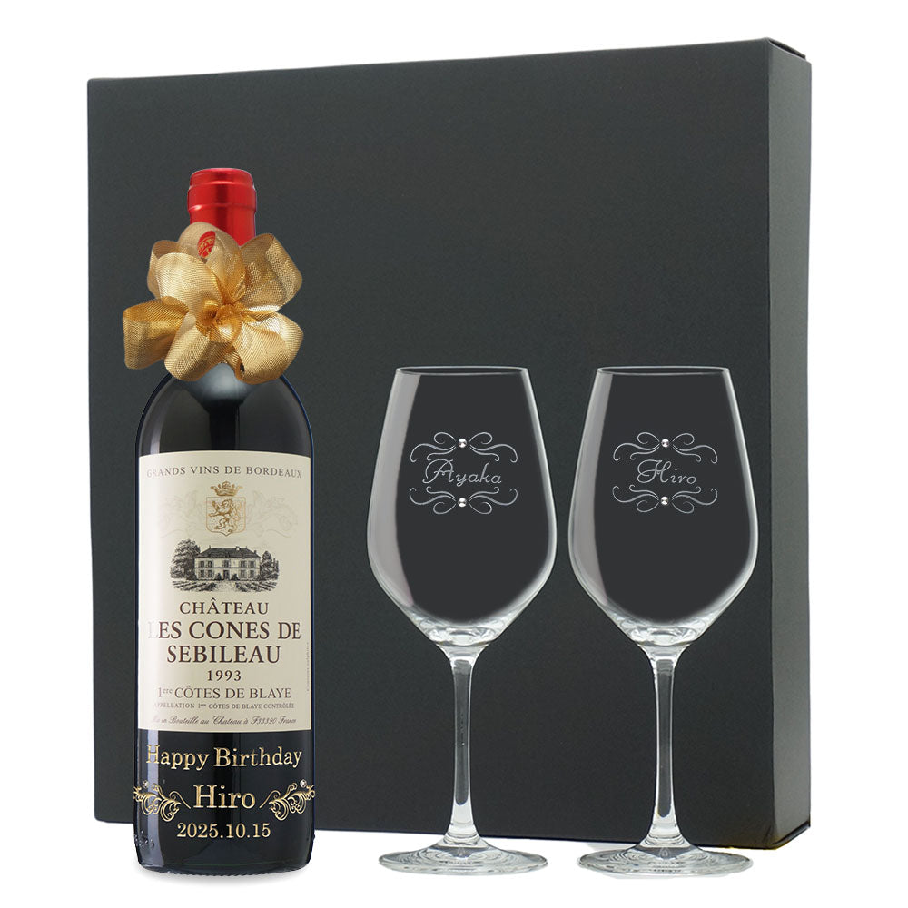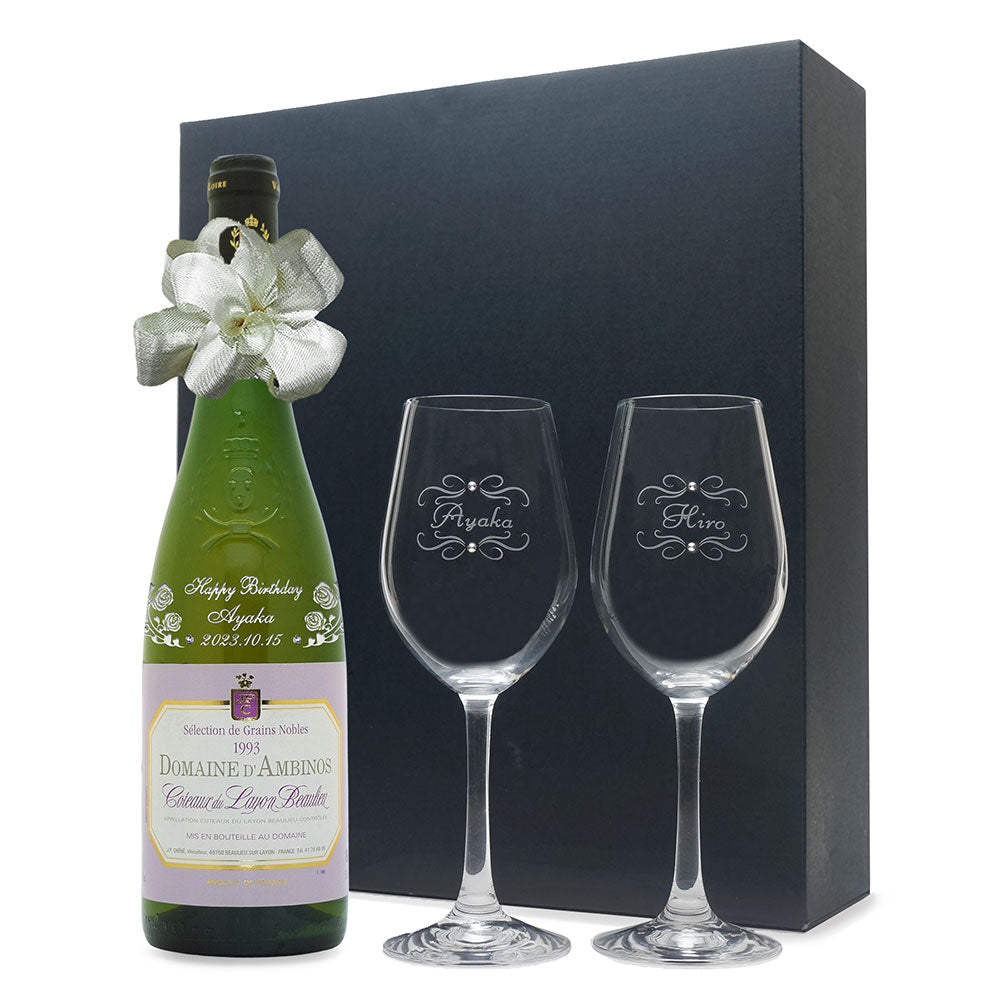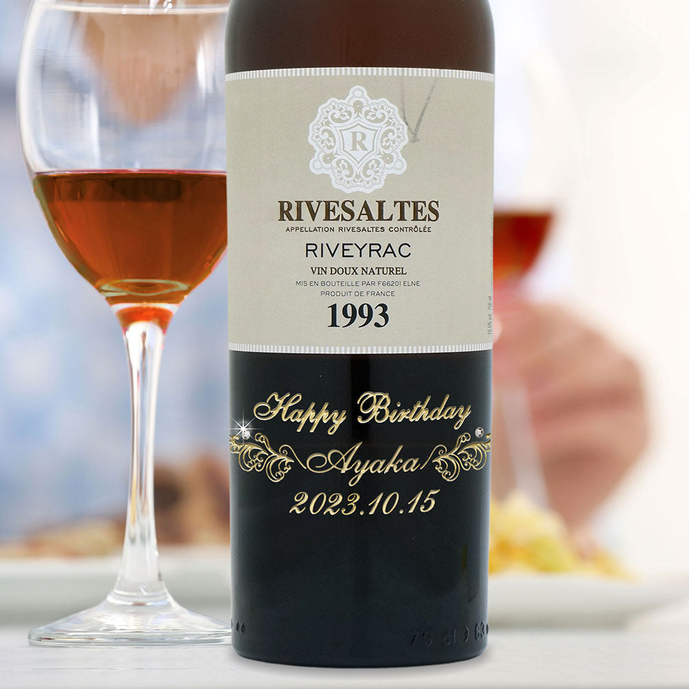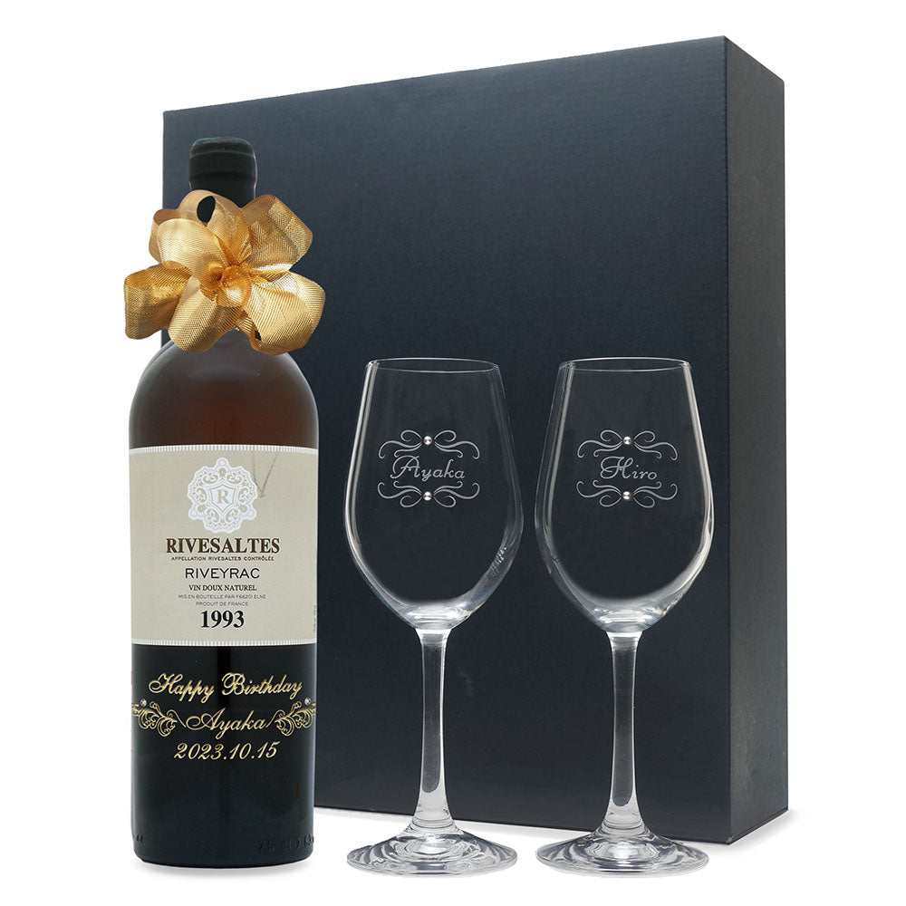1993年に収穫されたブドウで作られた生まれ年ワインに、名前やメッセージを彫刻し、ペアグラスとともに贈るオーダーメイドギフト。心に残る、感動のプレゼントです。