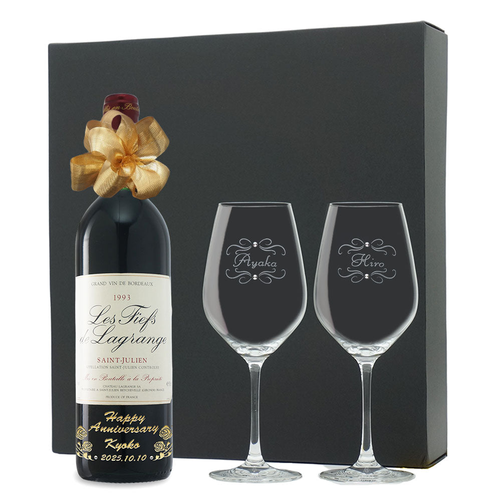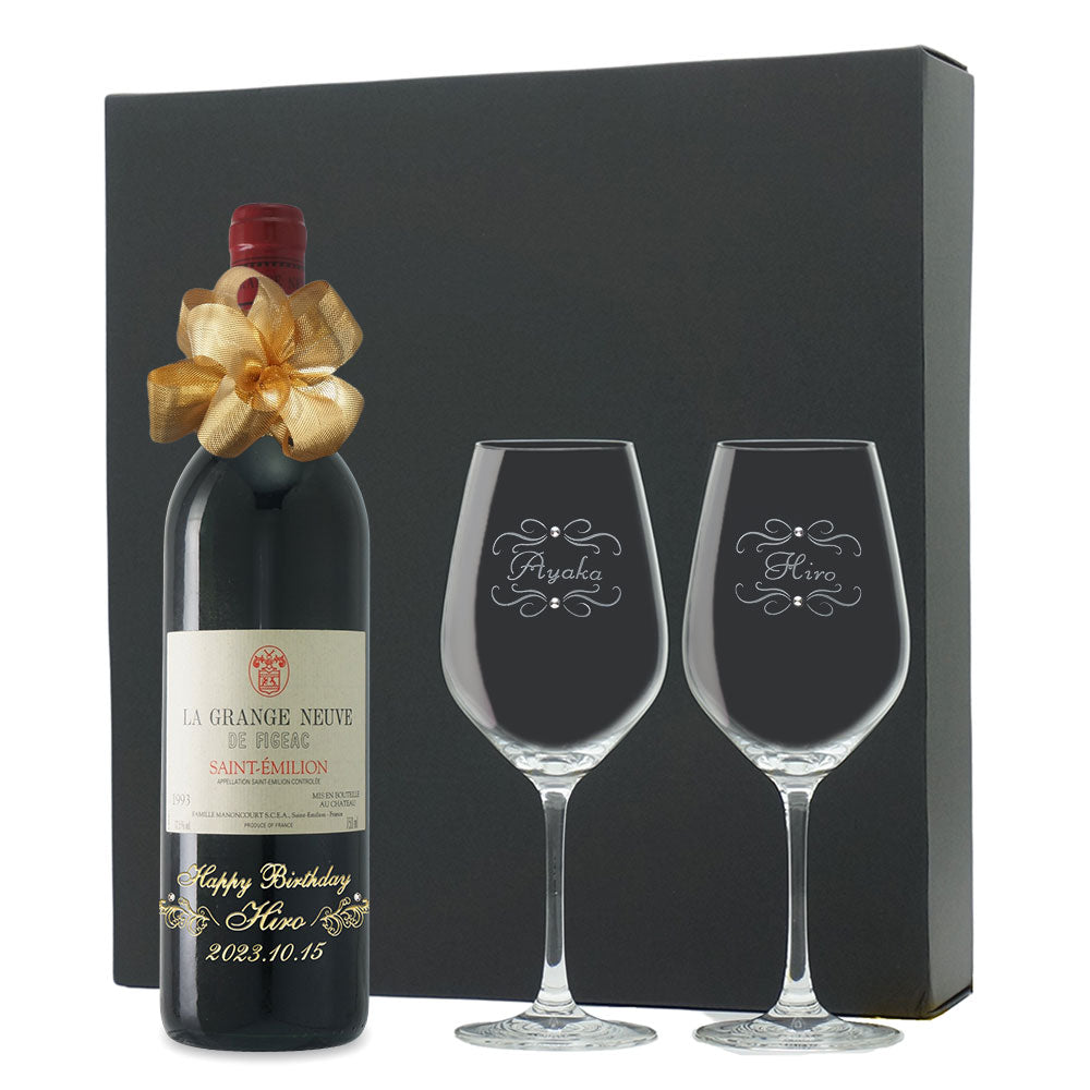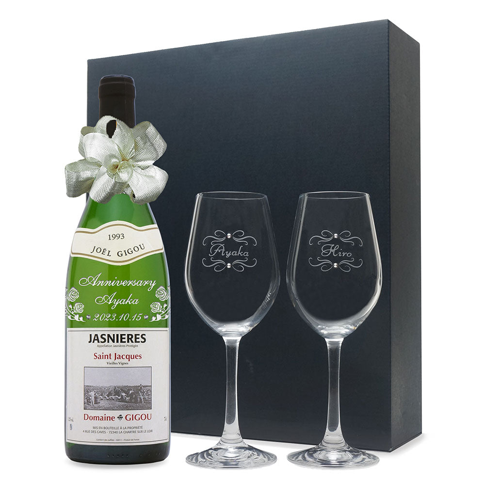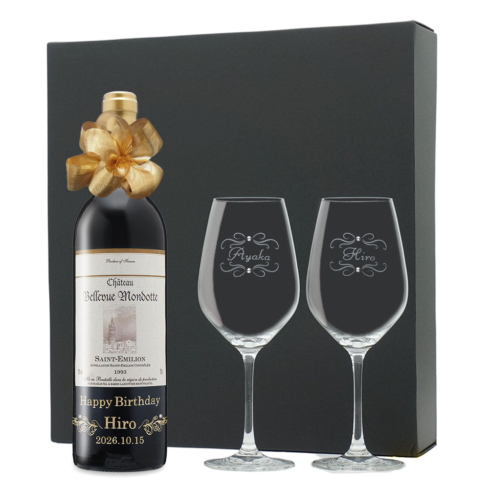1993年に収穫されたブドウで作られた生まれ年ワインに、名前やメッセージを彫刻し、ペアグラスとともに贈るオーダーメイドギフト。心に残る、感動のプレゼントです。