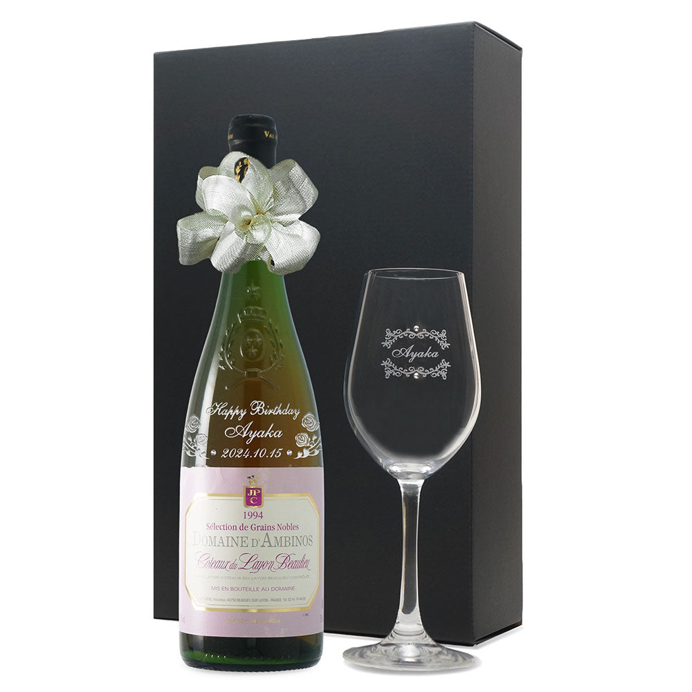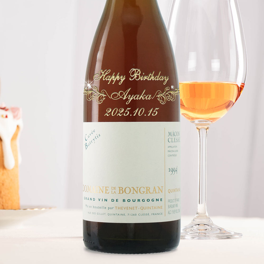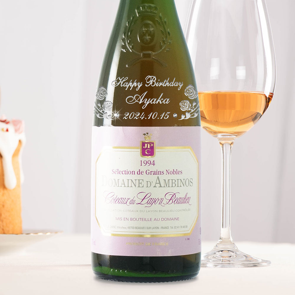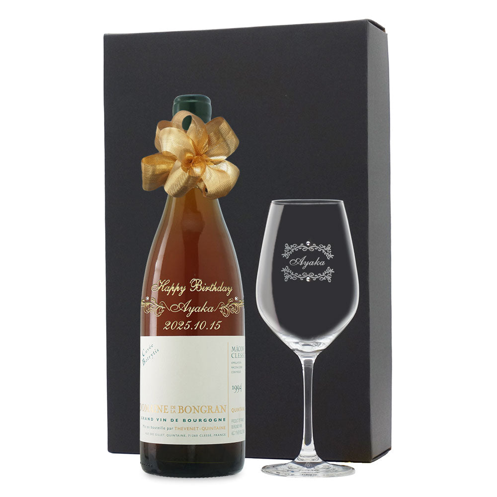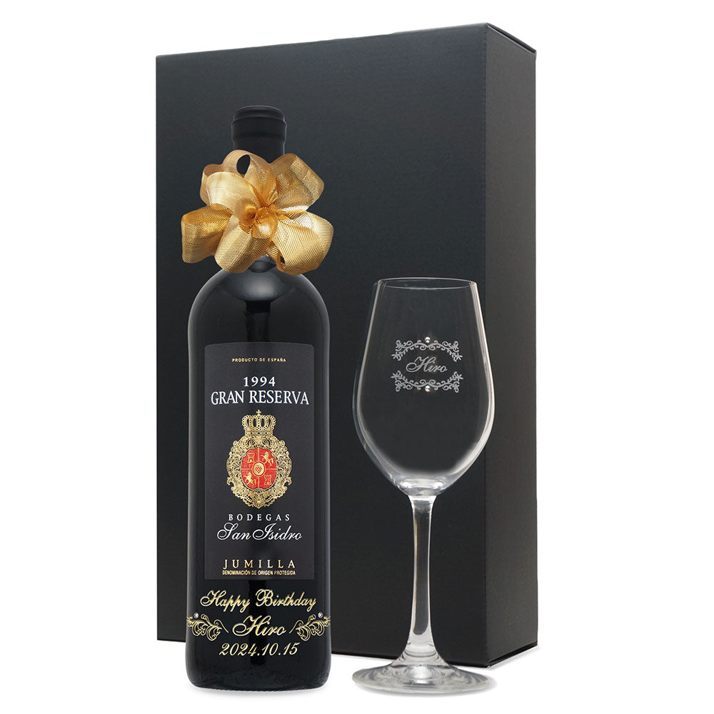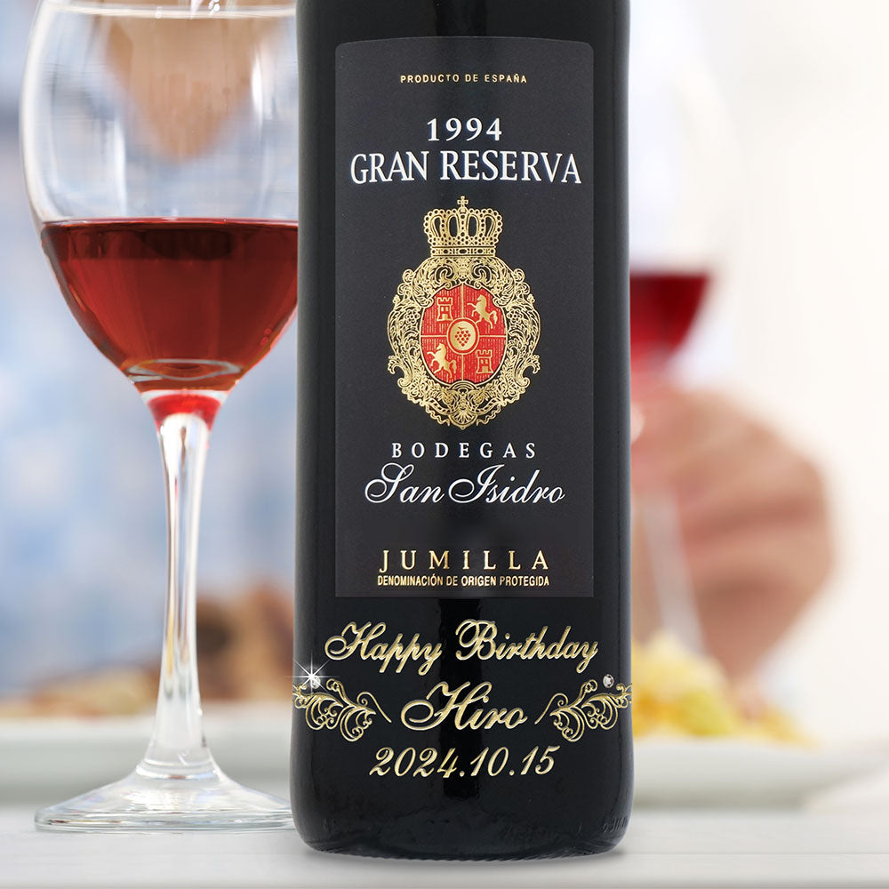 1994年に収穫されたブドウで作られた生まれ年ワインに、名前やメッセージを彫刻し、ワイングラスとともに贈る特別なオーダーメイドギフト。誕生日や記念日に、大切な方への感動を演出します。