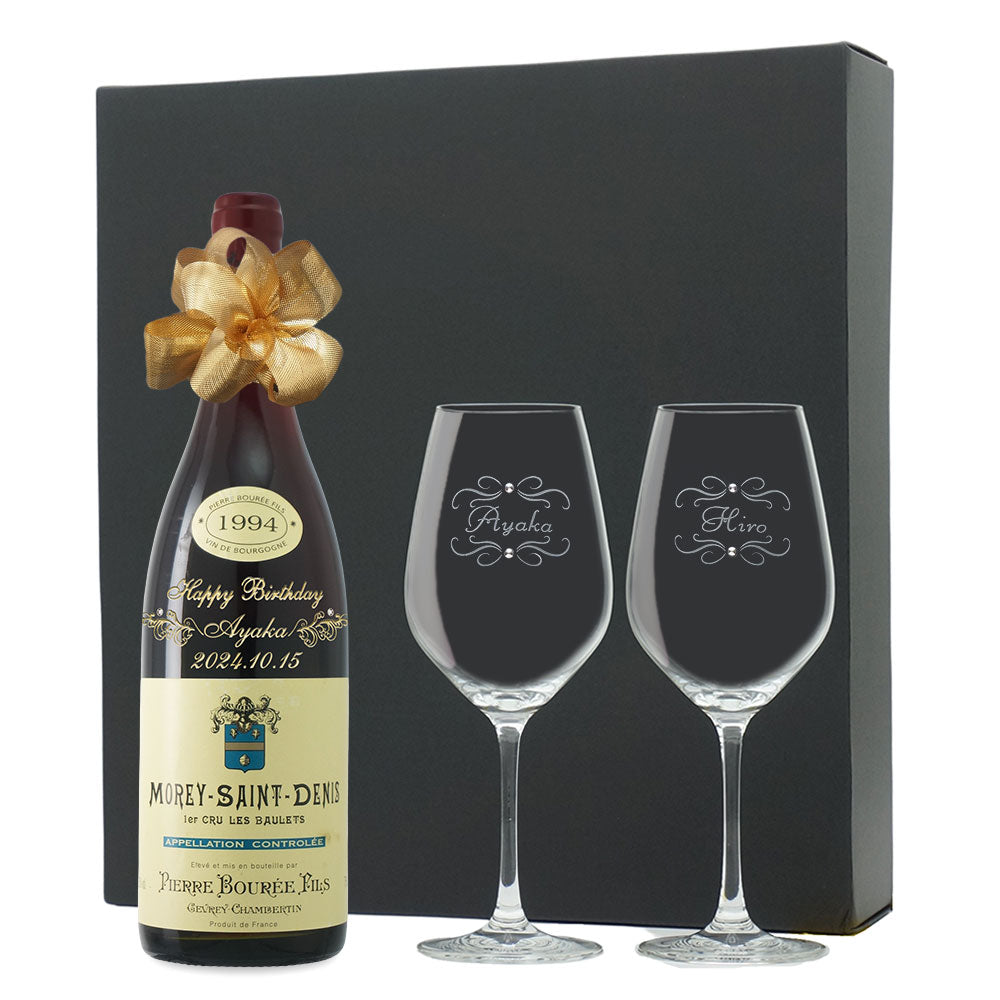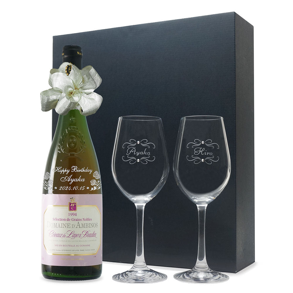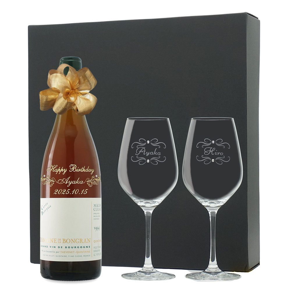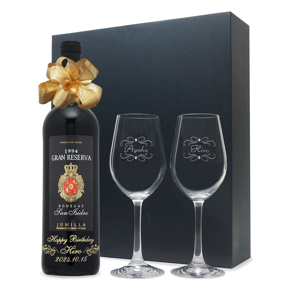 1994年に収穫されたブドウで作られた生まれ年ワインに、名前やメッセージを彫刻し、ペアグラスとともに贈るオーダーメイドギフト。心に残る、感動のプレゼントです。