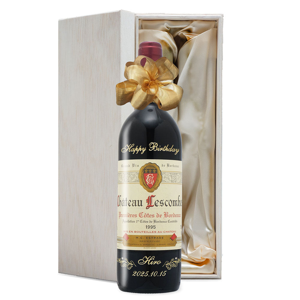 1995年に収穫されたブドウで作られた生まれ年ワインに、名前やメッセージを彫刻して贈る、特別なオーダーメイドギフト。誕生日や記念日に、世界でひとつだけの感動をお届けします。