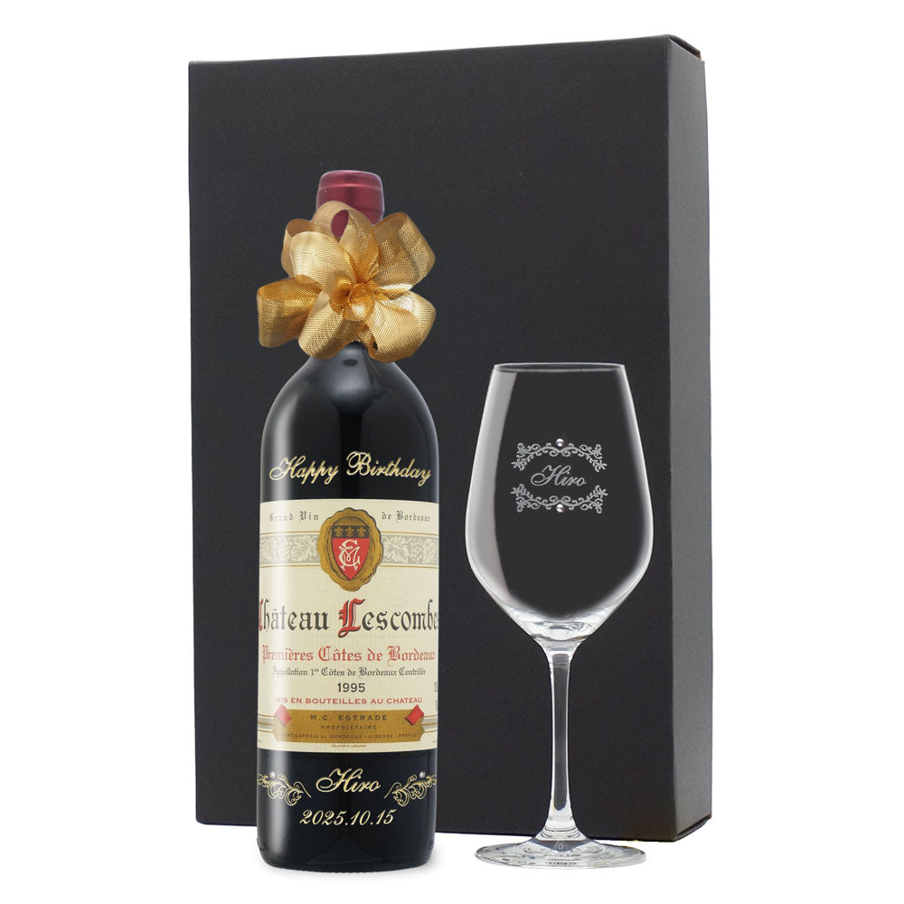 1998年の赤ワインとグラスをセットで贈り