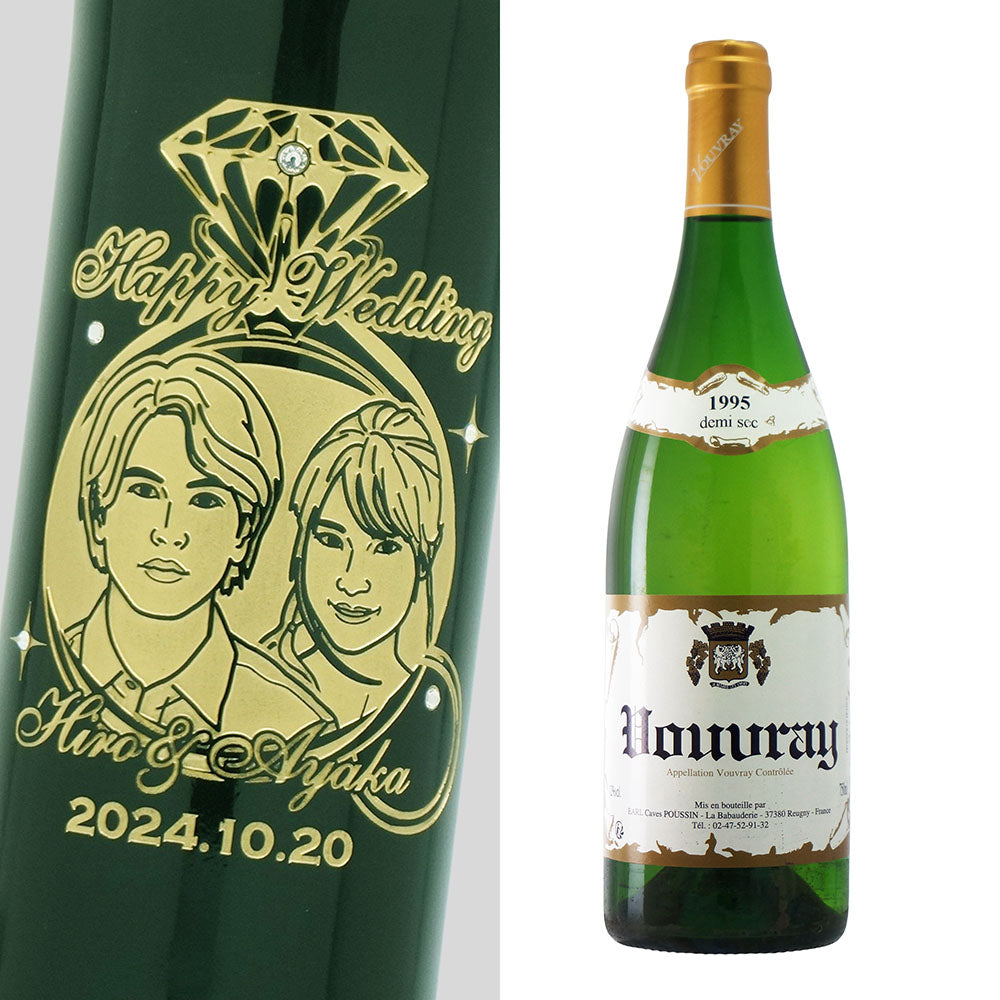 1995年に収穫されたブドウで作られた生まれ年ワインに、お名前やメッセージだけでなく、贈る方の似顔絵を彫刻することで、その人だけの特別な贈り物に仕上げます。