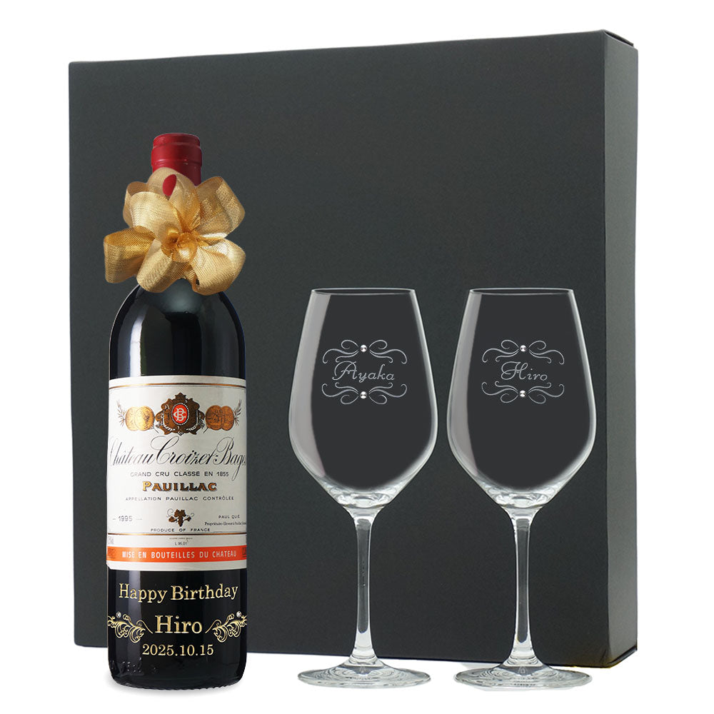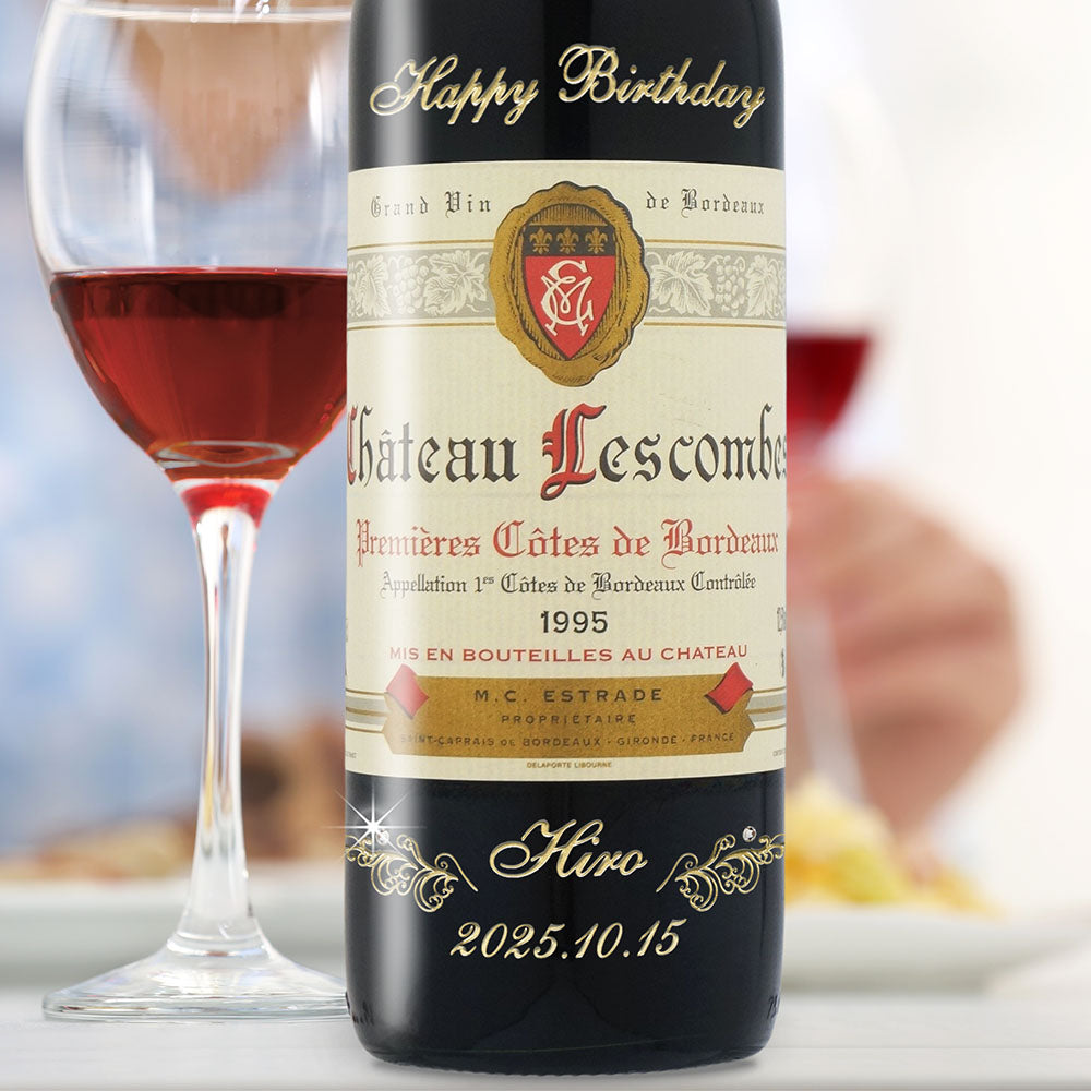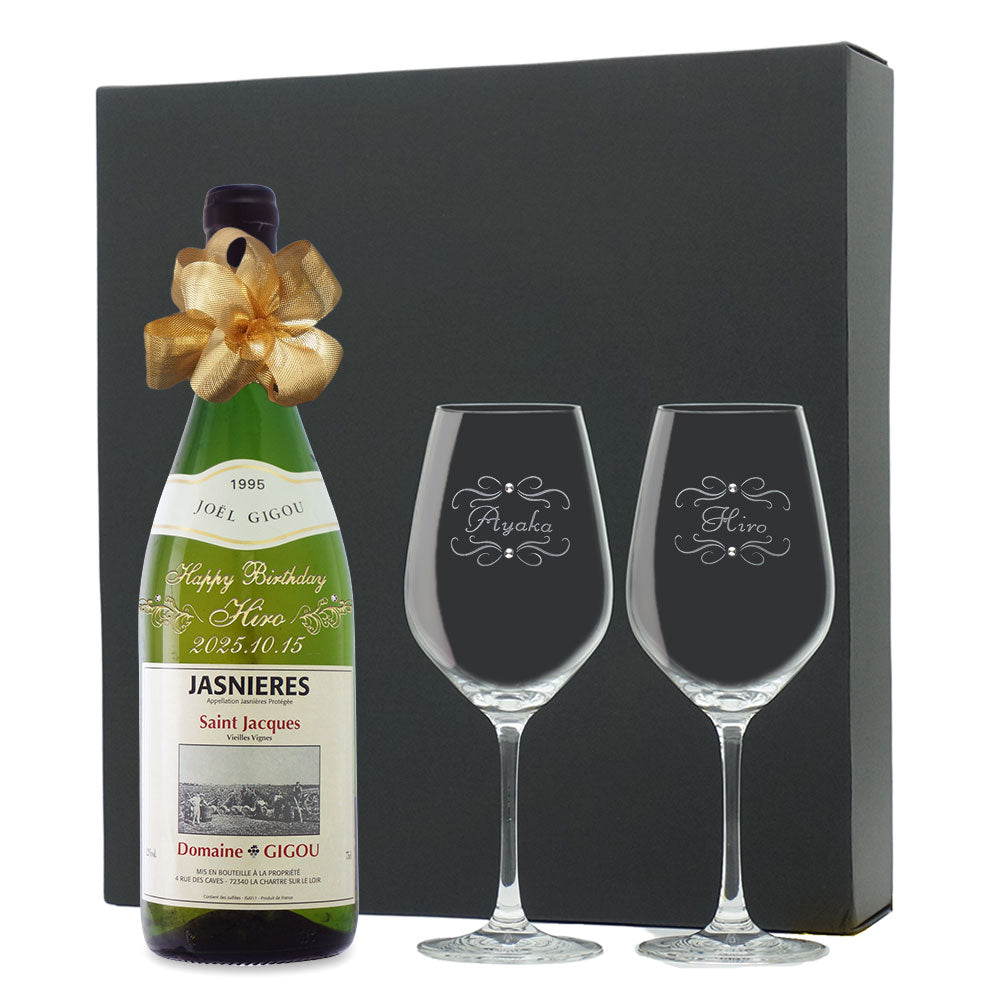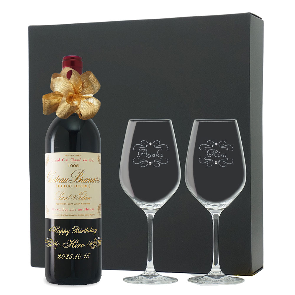 1995年に収穫されたブドウで作られた生まれ年ワインに、名前やメッセージを彫刻し、ペアグラスとともに贈るオーダーメイドギフト。心に残る、感動のプレゼントです。