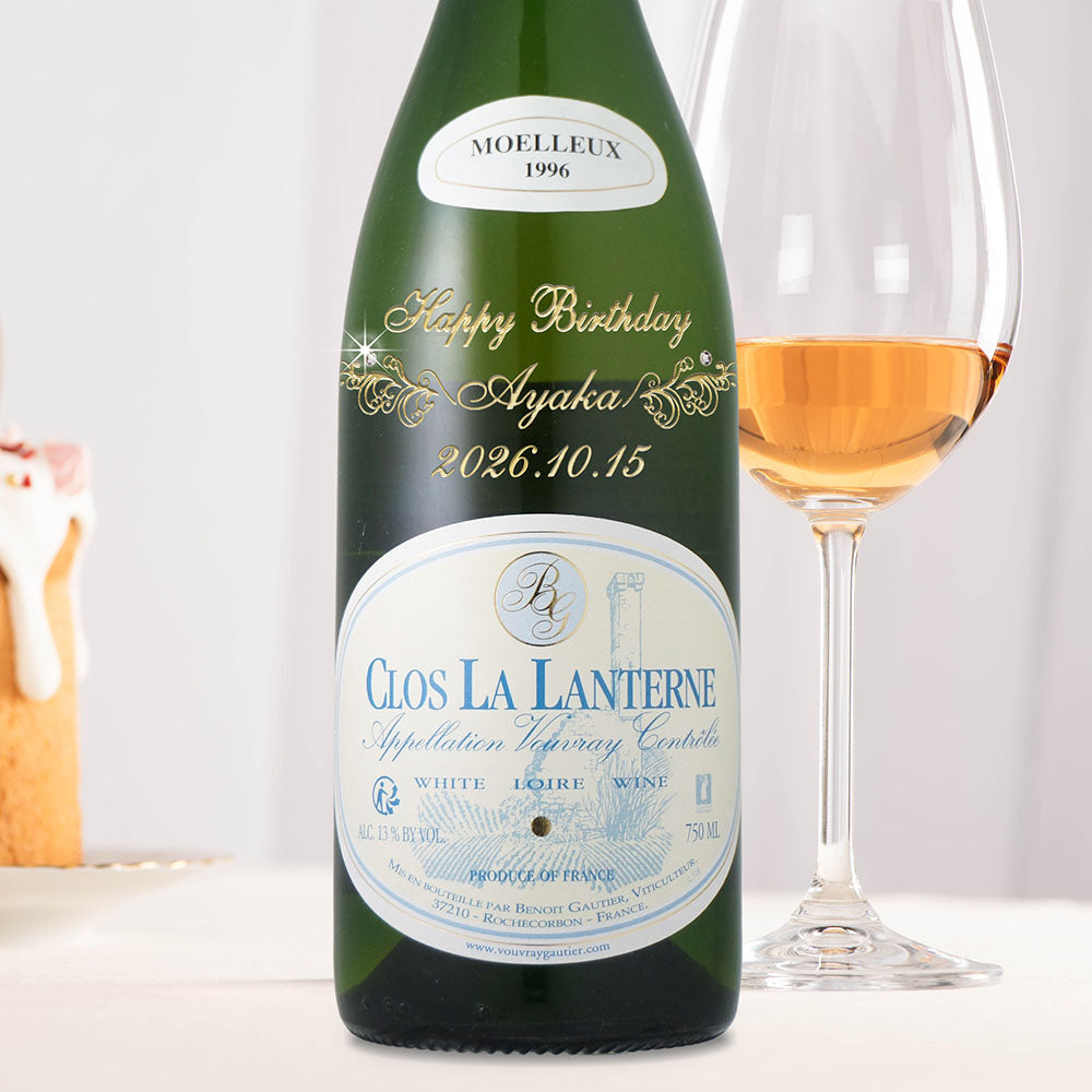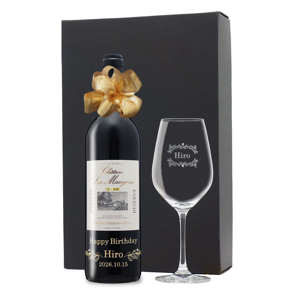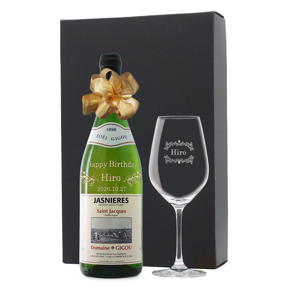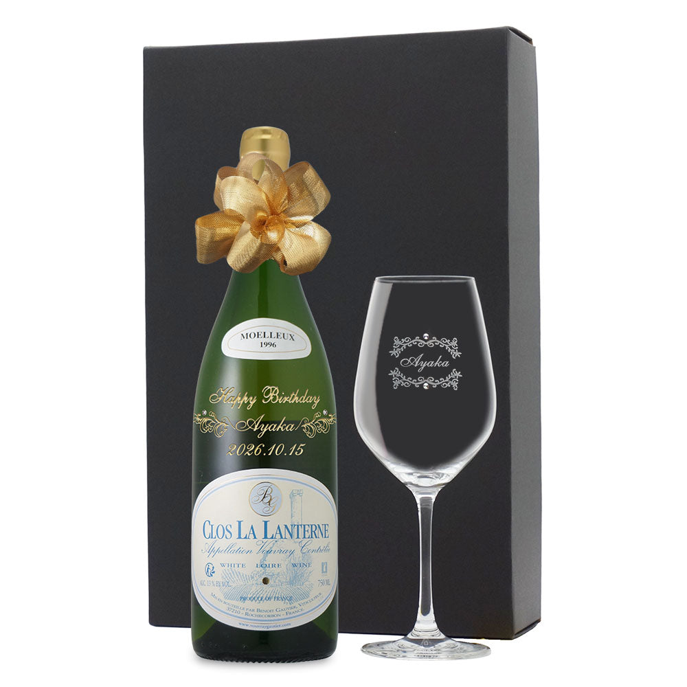 1996年に収穫されたブドウで作られた生まれ年ワインに、名前やメッセージを彫刻し、ワイングラスとともに贈る特別なオーダーメイドギフト。誕生日や記念日に、大切な方への感動を演出します。