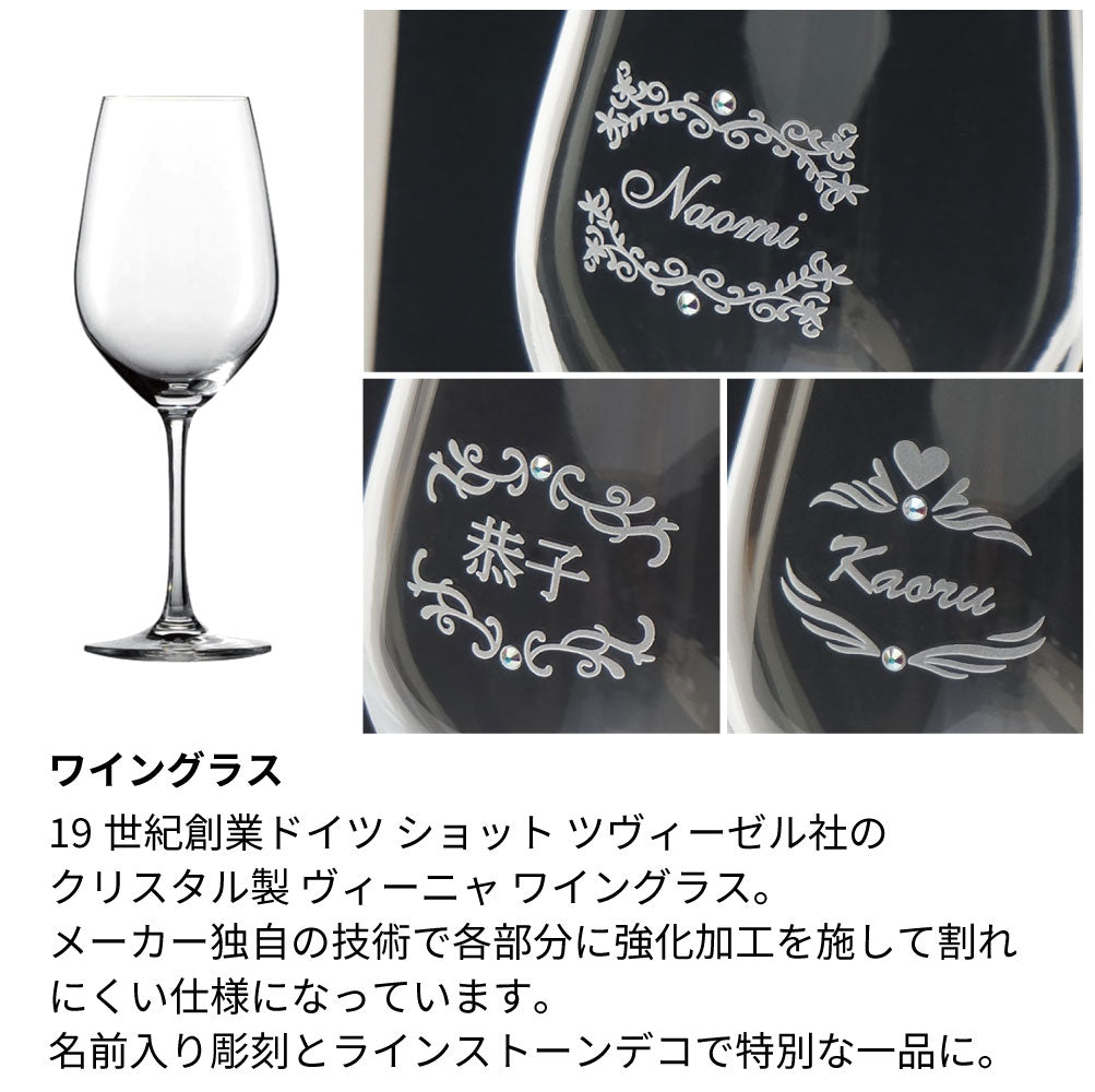 誕生日や結婚記念日、退職祝いに最適です。ワイン、グラスに名前を彫刻することで、贈る相手に思い出深いものになります。