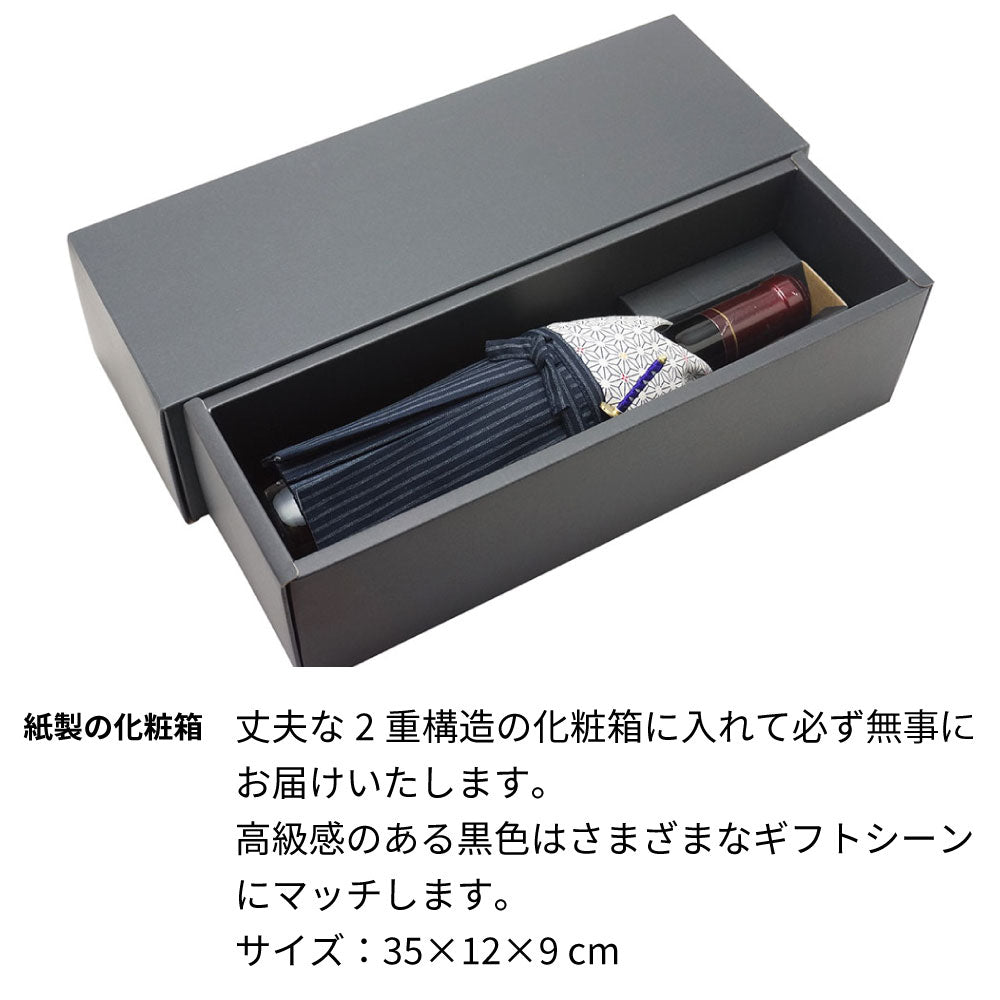 1997年に収穫されたブドウで醸造・熟成された生まれ年ワインに着物をかぶせた「世界に1つ」の贈り物です。