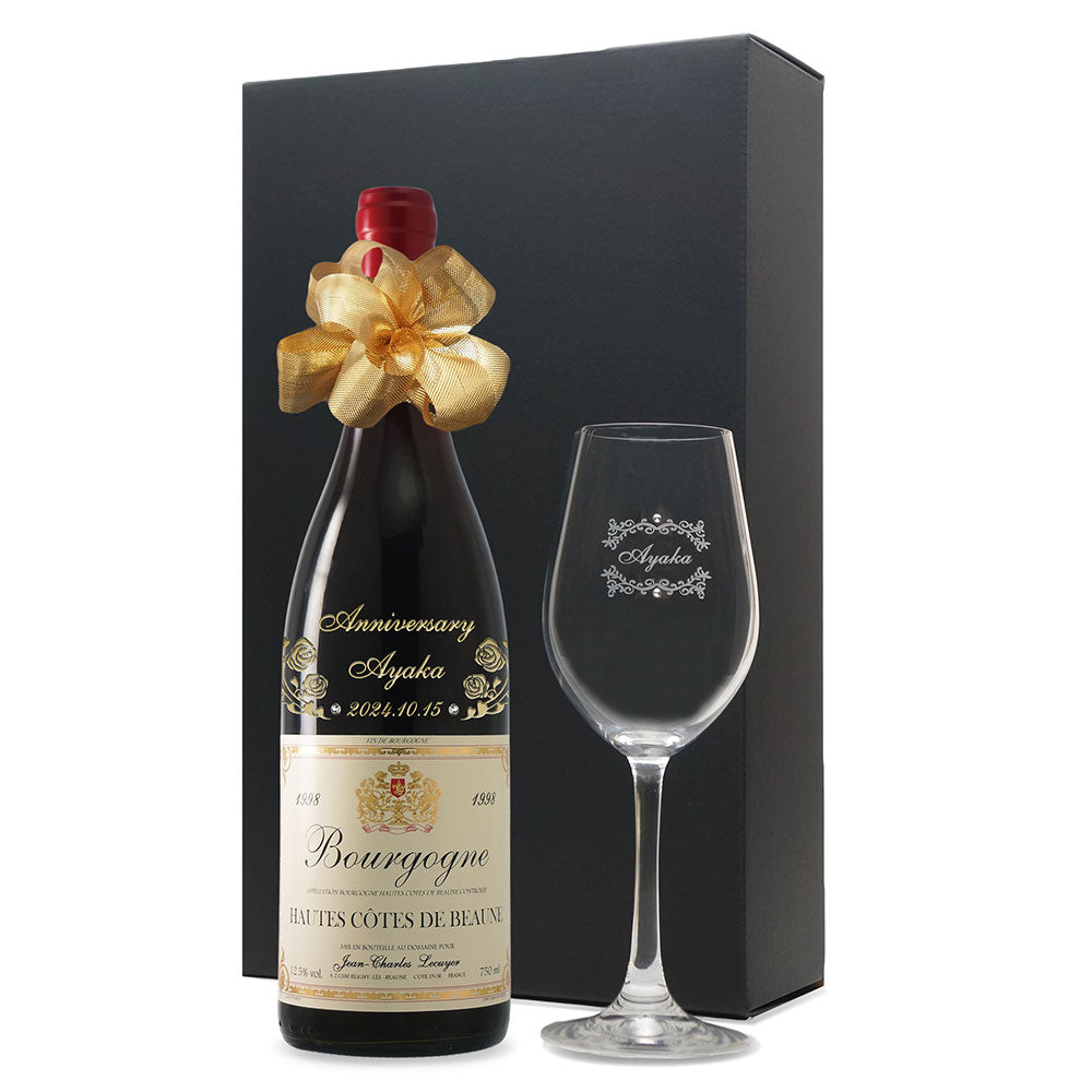 1998年に収穫されたブドウで作られた生まれ年ワインに、名前やメッセージを彫刻し、ワイングラスとともに贈る特別なオーダーメイドギフト。誕生日や記念日に、大切な方への感動を演出します。