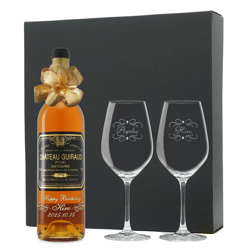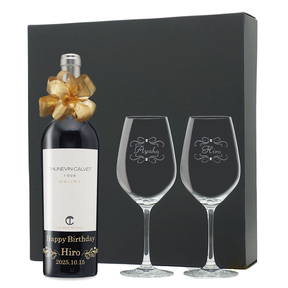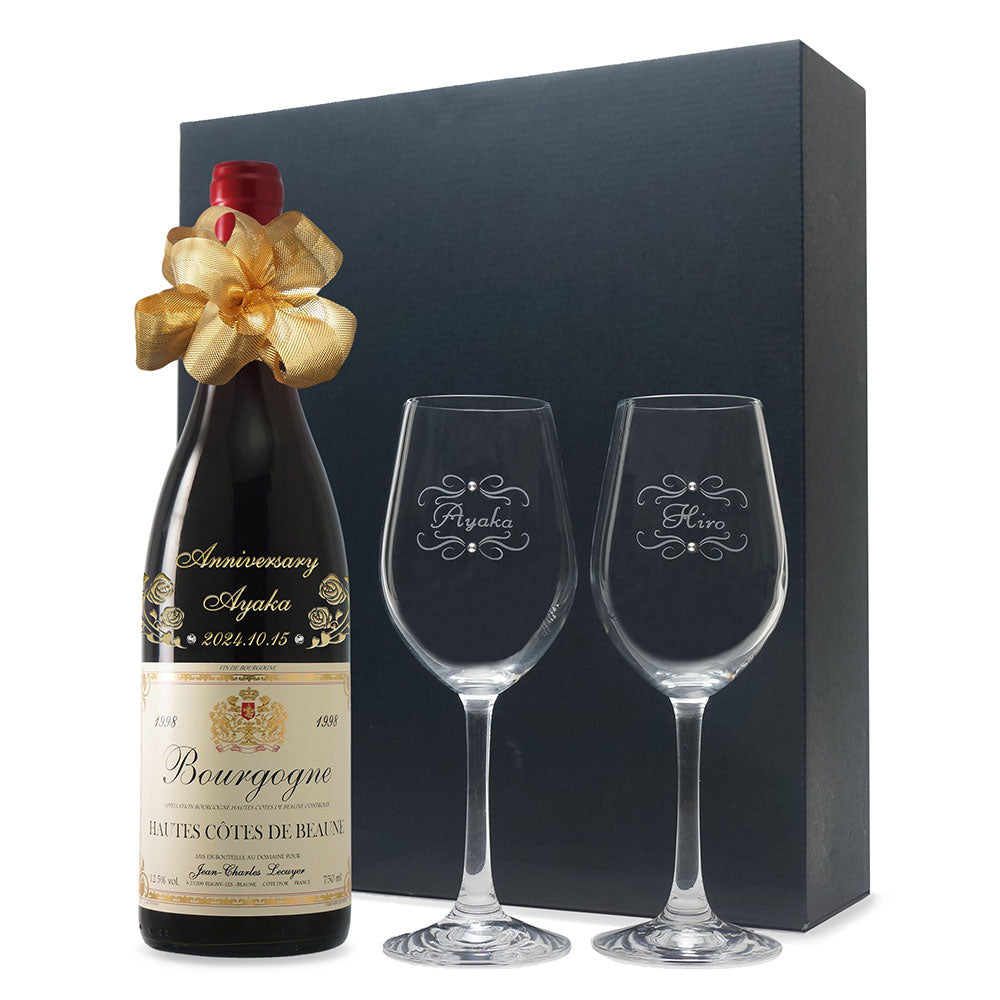 1998年に収穫されたブドウで作られた生まれ年ワインに、名前やメッセージを彫刻し、ペアグラスとともに贈るオーダーメイドギフト。心に残る、感動のプレゼントです。
